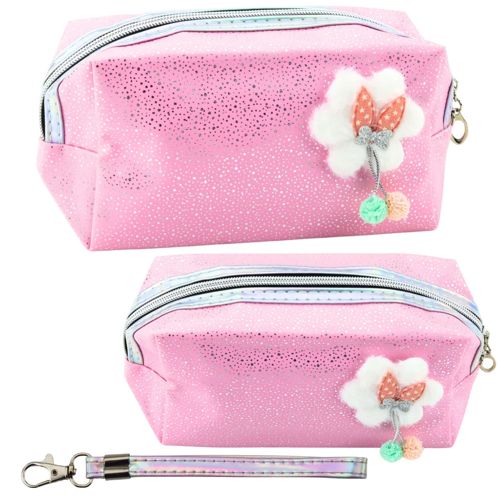 Stylowy piórnik kosmetyczka to wyjątkowy dodatek do każdej szkolnej wyprawki czy codziennego użytku. Wykonany w eleganckim, różowym kolorze, ozdobiony delikatnymi, połyskującymi drobinkami, przyciąga wzrok swoim niepowtarzalnym designem. Na froncie piórnika znajduje się urocza aplikacja w formie puszystej chmurki z kokardką, do której przyczepione są dwie dekoracyjne kuleczki, nadające całości wyjątkowego uroku.