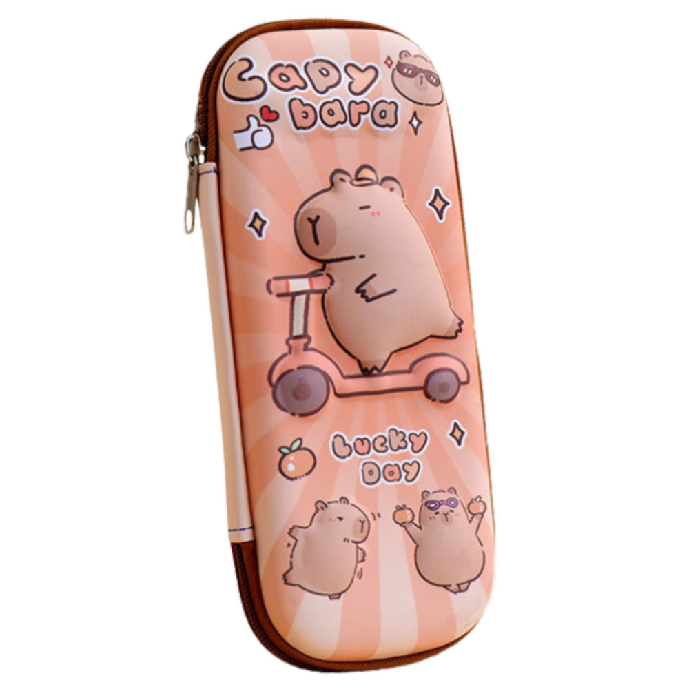 Pojemny i stylowy piórnik z wizerunkiem uroczej kapibary na hulajnodze to idealny wybór dla fanów zwierzaków i kreatywnego stylu. Utrzymany w ciepłych pastelowych barwach, z zabawnymi nadrukami i napisem „Lucky Day”, wyróżnia się niebanalnym designem i przyciąga uwagę dzieci oraz młodzieży. To funkcjonalne i estetyczne akcesorium do szkoły, domu czy na zajęcia dodatkowe.