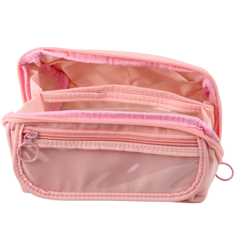 RÓŻOWY PIÓRNIK ROZKŁADANY Z PRZEZROCZYSTĄ KIESZENIĄ