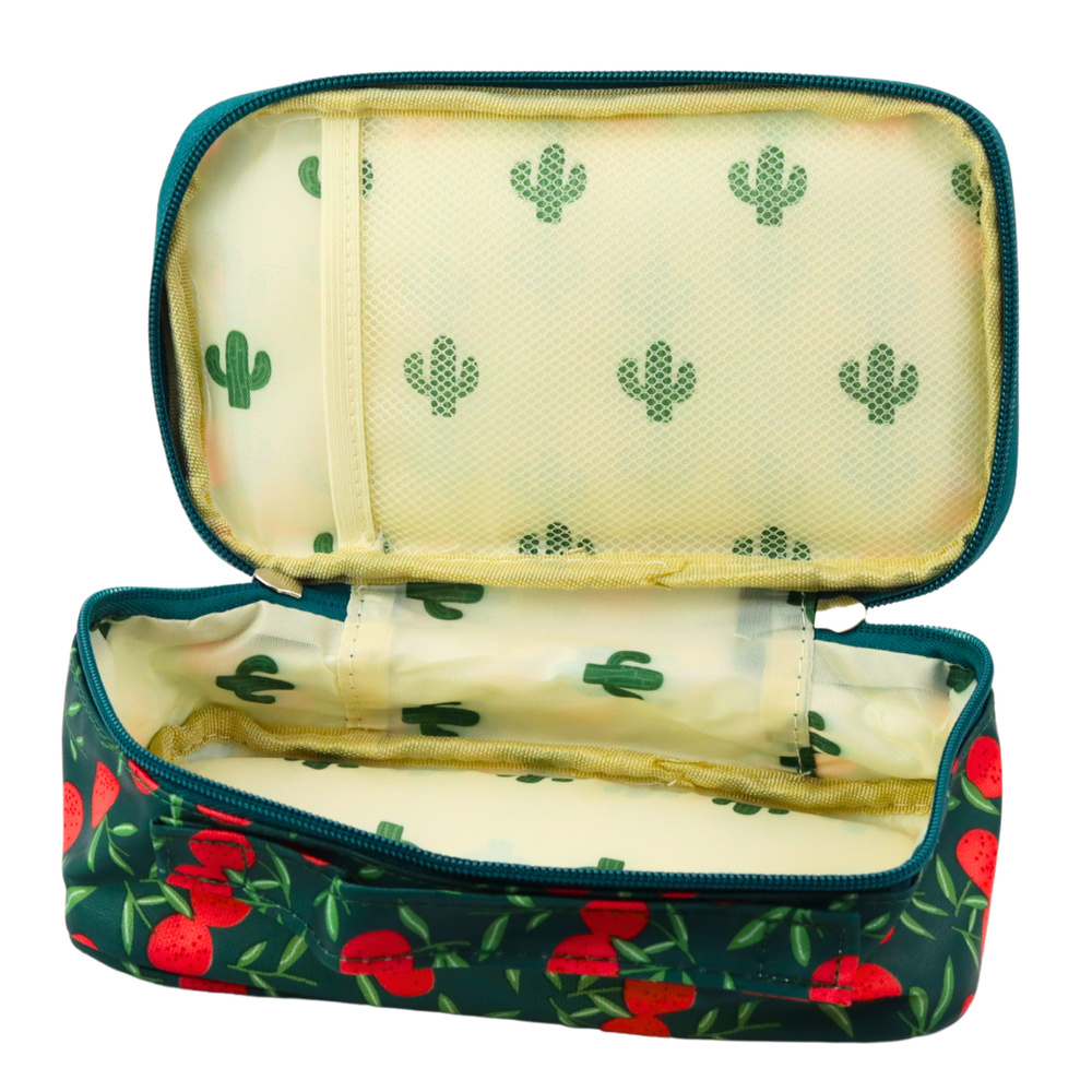 Całość wykonana została z trwałego materiału, odpornego na codzienne użytkowanie oraz łatwego do utrzymania w czystości. Dzięki temu piórnik zachowa swój estetyczny wygląd przez długi czas. Poręczny uchwyt na górze pozwala z łatwością przenosić piórnik, np. na zajęcia dodatkowe lub w czasie podróży. Nowoczesny i przyciągający uwagę wzór, w połączeniu z kompaktowymi wymiarami, sprawia, że produkt idealnie mieści się w plecaku, nie zajmując przy tym zbyt wiele miejsca.