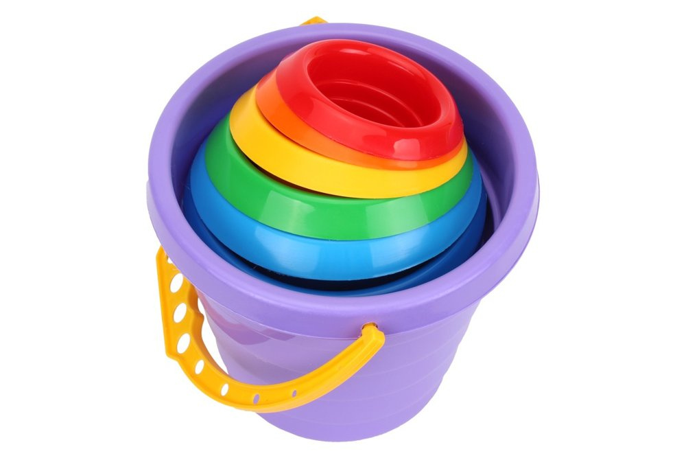 Zabawka ćwicząca kreatywność i umiejętność logicznego myślenia nie ma zasad, według której należy się nią bawić — to, w jaki sposób można z niej korzystać, zależy tylko od dziecka, jego rodziców i ich wyobraźni. Jesteśmy pewni, że bogata, bajeczna kolorystyka, a także wysoka jakość wykonania zabawki zachęcą każdego maluszka do nauki poprzez zabawę. Jeden z elementów to wiadro z uchwytem, w którym można umieścić wszystkie części.