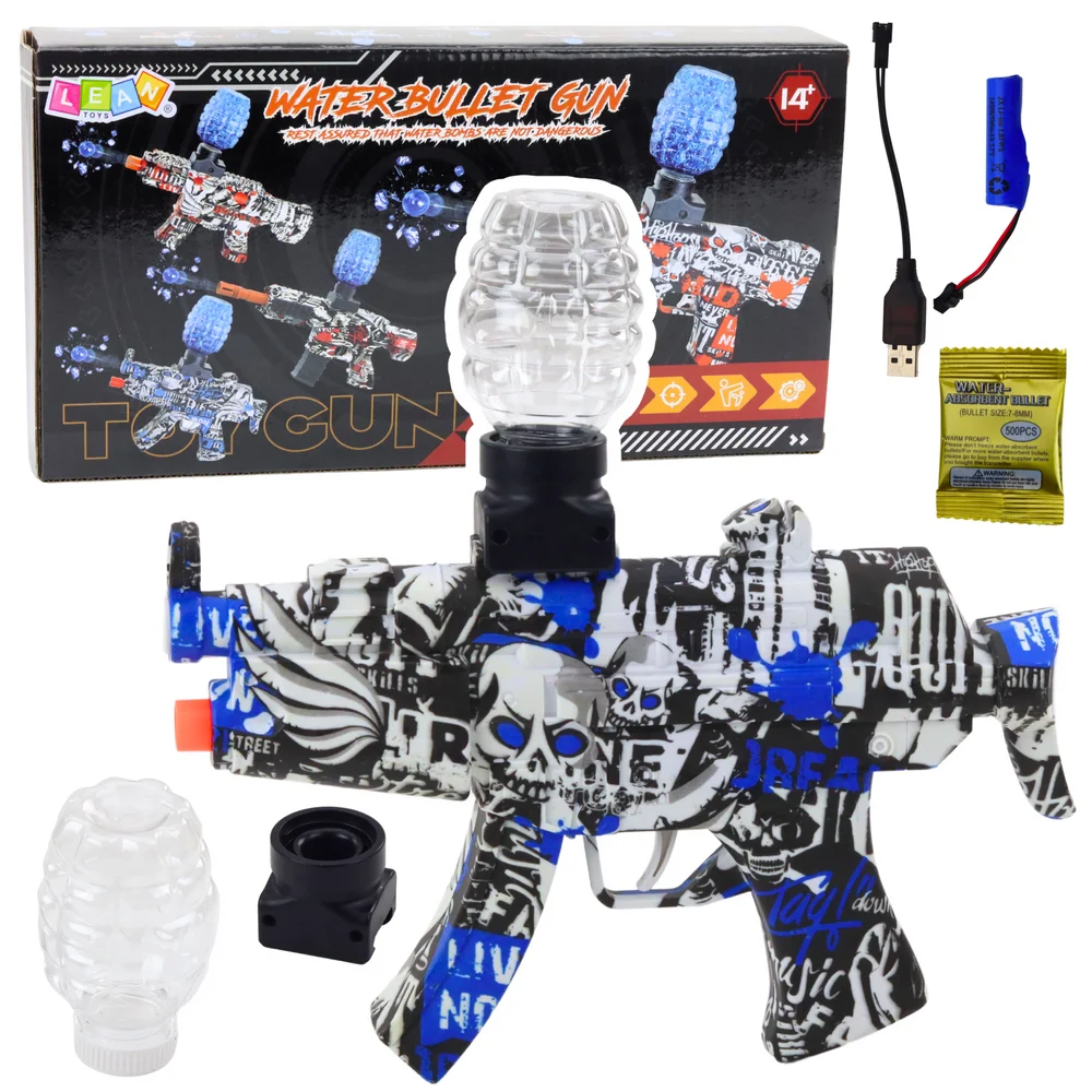 ELEKTRYCZNY KARABIN NA KULKI HYDROŻELOWE BIAŁO NIEBIESKIE GRAFFITI