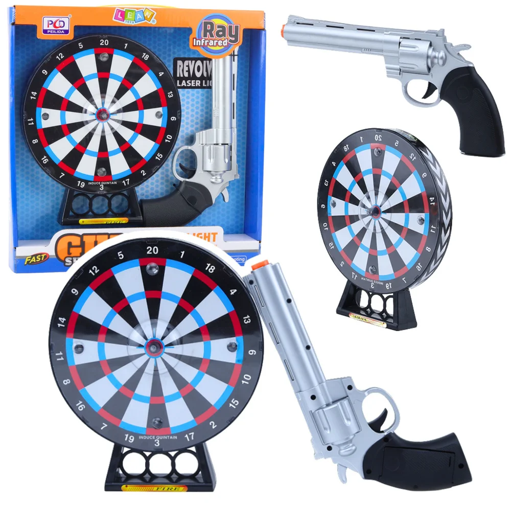 Zestaw Pistolet Rewolwer Laserowy Z Tarczą Gra Strzelecka Światła Dźwięki