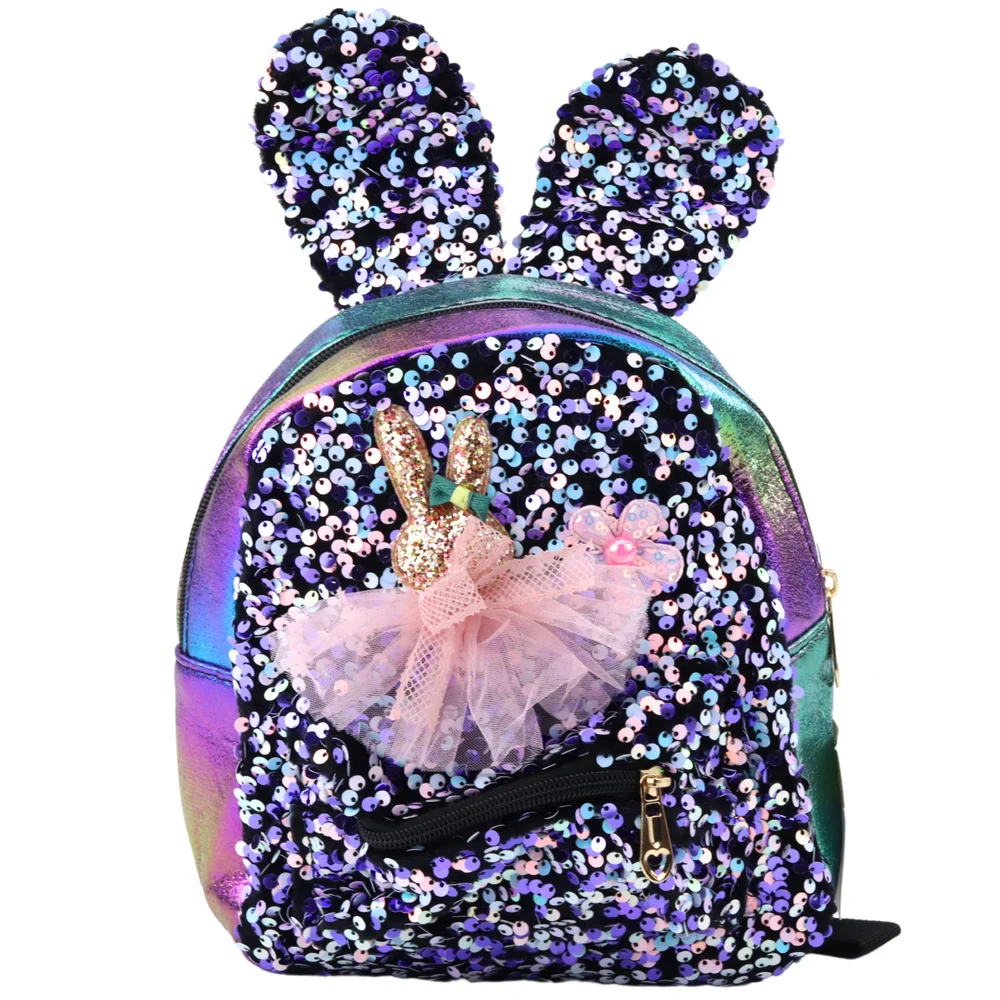 PLECAK DZIECIĘCY KOLOROWY Z CEKINAMI I USZAMI KRÓLIKA 4,4L