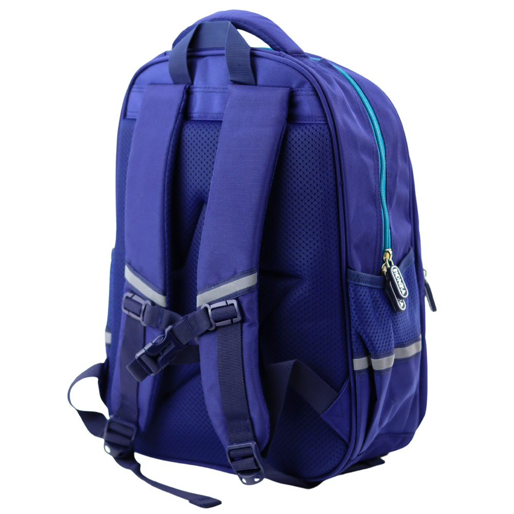 Ergonomiczne plecy, miękkie, szerokie szelki oraz regulowany pas piersiowy zapewniają komfort użytkowania i wspomagają równomierne rozłożenie ciężaru, zmniejszając obciążenie barków nawet o 27%. Dodatkowe elementy odblaskowe zwiększają bezpieczeństwo dziecka.