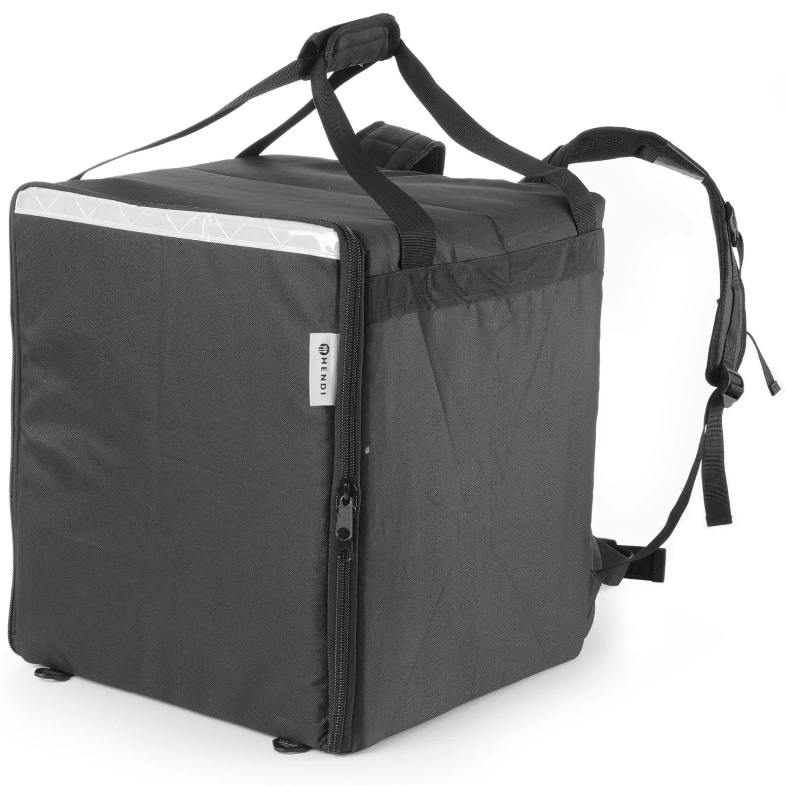 Plecak dostawczy marki Hendi to doskonałe rozwiązanie dla osób zajmujących się dostawą jedzenia. Dzięki pojemności 72 litrów, zmieścisz w nim do 10 kartonów na pizzę lub inne standardowe opakowania, takie jak 8 sałatek, 6 dań głównych i 6 zup.