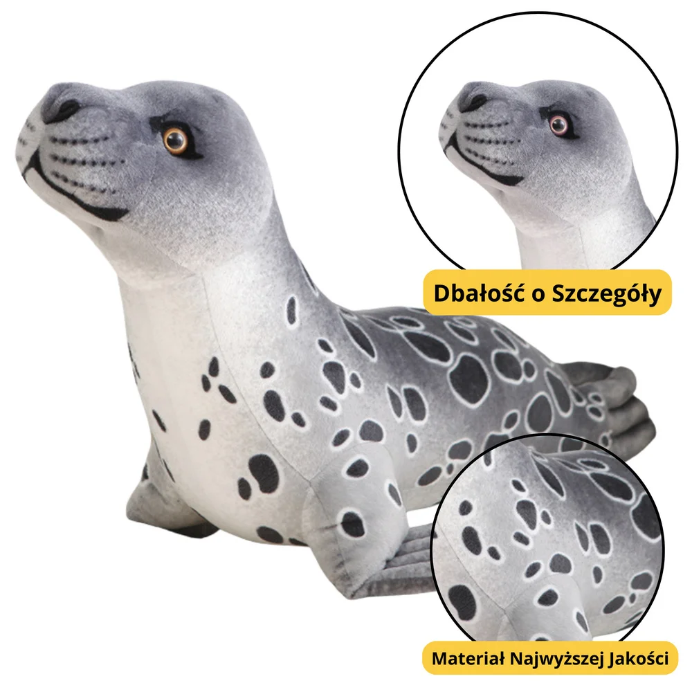 Pluszowa foka to wyjątkowa zabawka stworzona z myślą o najmłodszych miłośnikach morskich zwierząt, którzy z zaciekawieniem odkrywają tajemnice podwodnego świata. Została wykonana z miękkiego, przyjemnego w dotyku materiału, który zapewnia dziecku komfort podczas zabawy i tulenia. Jej kolorystyka – realistyczne odcienie szarości oraz charakterystyczny nakrapiany wzór – odwzorowuje naturalne umaszczenie prawdziwej foki, co nadaje maskotce niezwykle autentyczny wygląd. Starannie zaprojektowane detale sprawiają, że przytulanka prezentuje się bardzo realistycznie i z łatwością zdobywa sympatię najmłodszych.