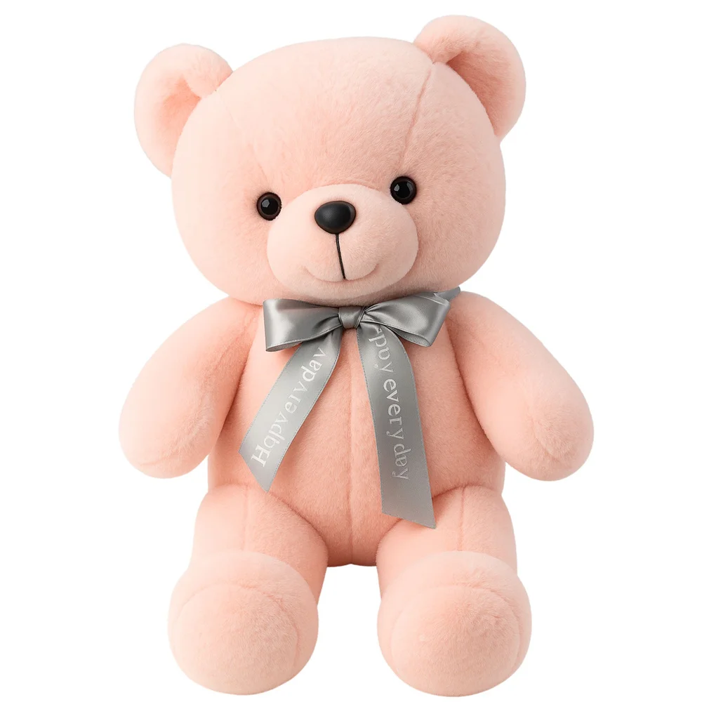 Miś pluszowy w delikatnym różowym kolorze to niezwykle urocza i przytulna zabawka, która doskonale łączy estetykę i funkcjonalność. Wykonany z wyjątkowo miękkiego i przyjemnego w dotyku materiału, zachwyca prostym, klasycznym designem i subtelną kolorystyką. Jego główną ozdobą jest elegancka, satynowa kokarda w kolorze srebrnym z napisem „Happy every day”, która dodaje mu elegancji i sprawia, że świetnie sprawdzi się jako prezent.
