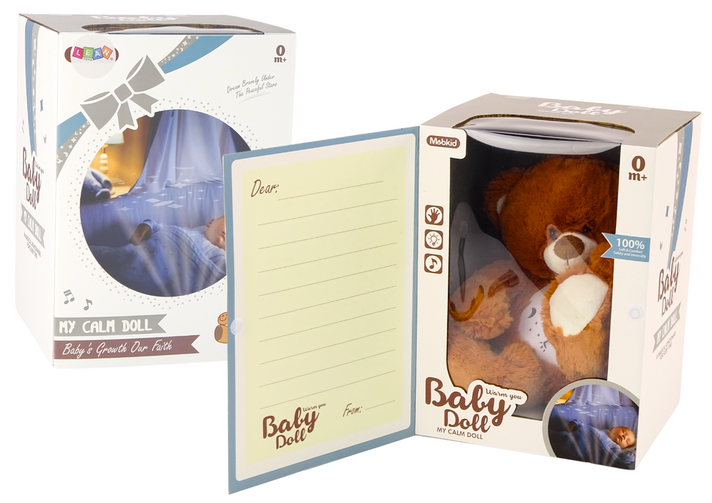 Natomiast gdy nadchodzi wieczór, miś przełącza się w tryb nocny, stając się niezastąpionym sprzymierzeńcem podczas ceremonii zasypiania.