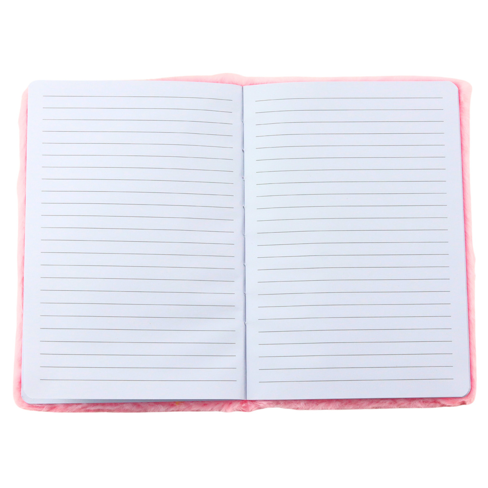 Wewnątrz znajdują się liniowane kartki, które są idealne do zapisywania notatek, prowadzenia dziennika, pisania wierszy lub robienia rysunków. Dzięki wymiarom 22 x 16 x 3 cm notatnik jest praktyczny i łatwy do przenoszenia - świetnie mieści się w plecaku, torbie czy piórniku. Jego miękka, puszysta faktura sprawia, że trzymanie go w dłoniach to czysta przyjemność!