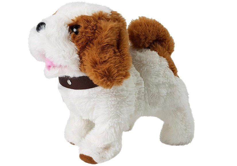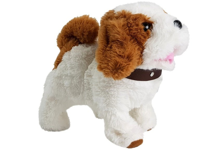 Pluszowy Piesek na Baterie Biały w Brązowe Łaty Akcesoria Dźwięk
