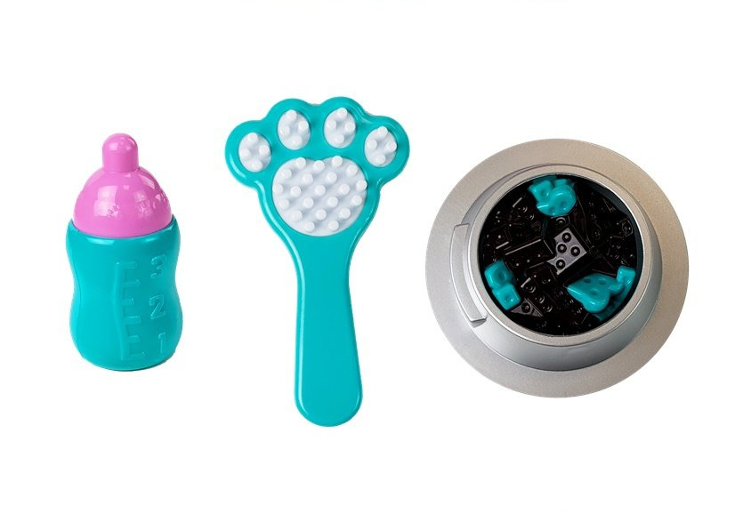 Posiada dwie funkcje . Wkładając butelkę do paszczy pieska, on zaczyna chodzić i porusza ogonkiem i główką, dodatkowo wydaje odgłosy szczekania. Drugim elementem dołączonym do zestawu jakim jest szczotka, gdy tylko pogłaszczesz go po główce zaczyna przyjemnie skomleć. Musisz zobaczyć to sam!