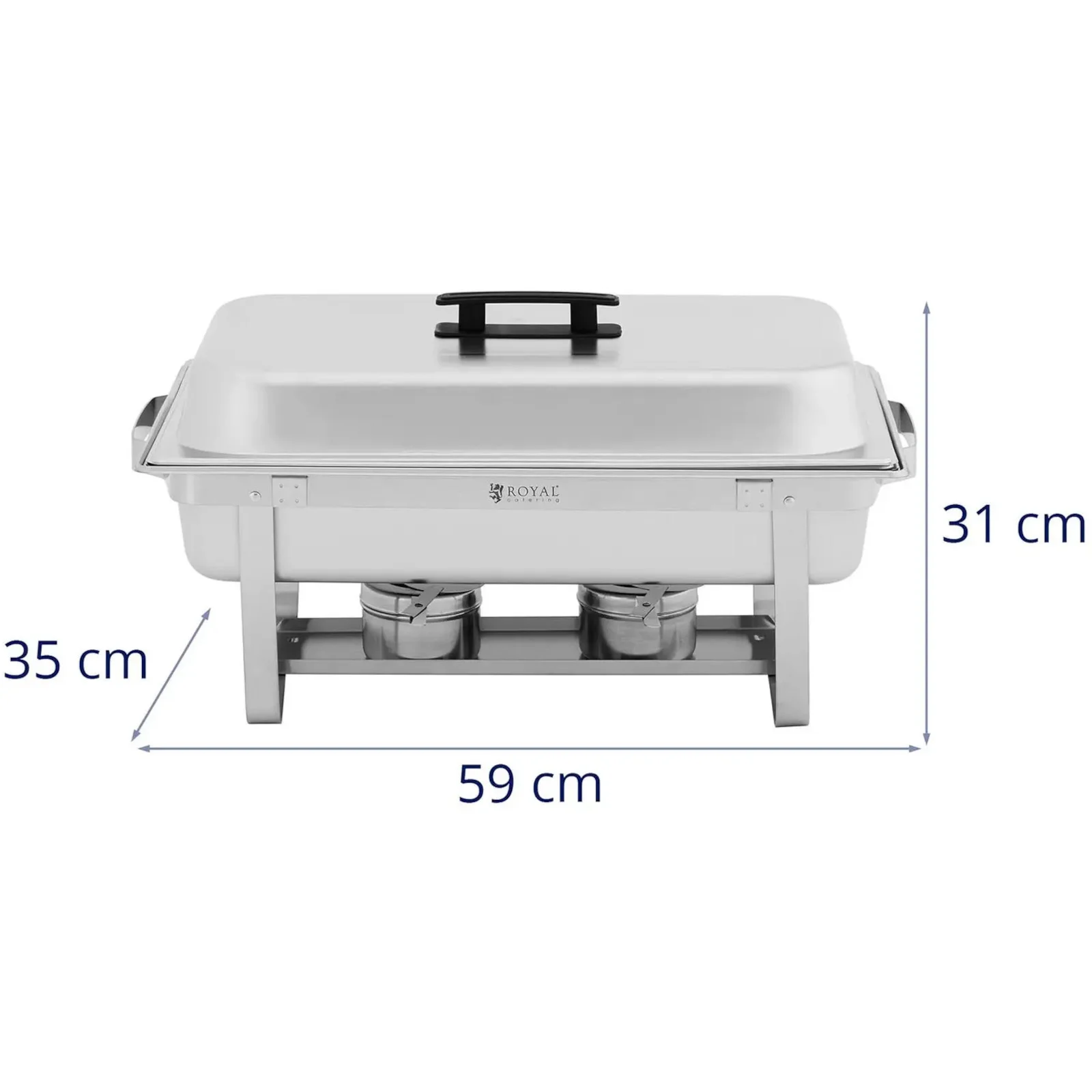Podgrzewacz marki Royal Catering to doskonałe rozwiązanie do utrzymywania potraw w cieple oraz ich efektownej prezentacji. Wykonany ze stali nierdzewnej, łączy elegancję z funkcjonalnością. Posiada pojemność 9 litrów, co pozwala na obsługę większej liczby gości jednocześnie.