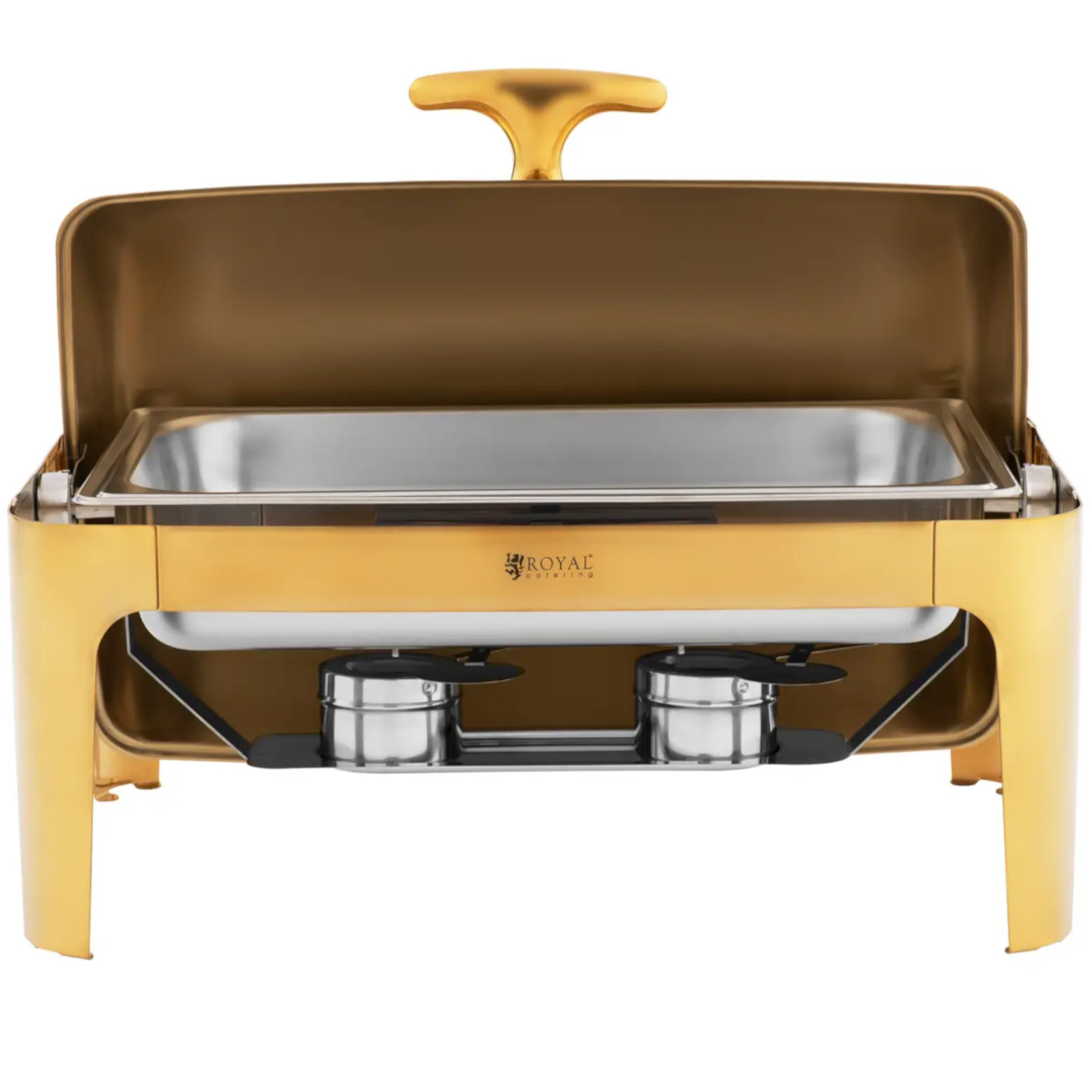 Podgrzewacz do potraw od marki Royal Catering to doskonałe rozwiązanie na bufety oraz wydarzenia cateringowe. Jego elegancki, złoty design przyciąga wzrok i sprawia, że potrawy prezentują się apetycznie. Idealnie sprawdzi się w hotelach, restauracjach, na stoiskach z jedzeniem oraz podczas bankietów.