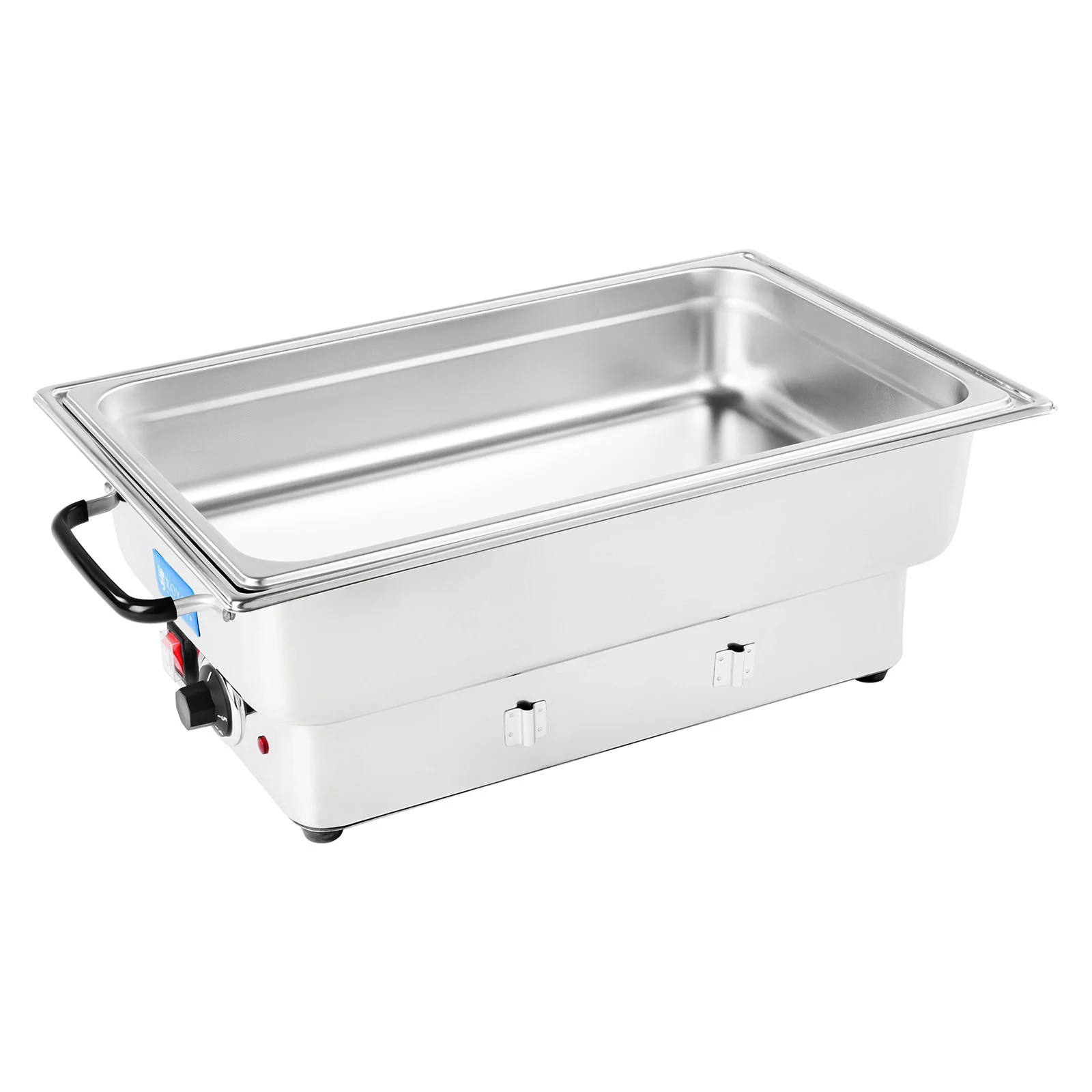 W zestawie znajduje się stalowy pojemnik GN 1/1 oraz ozdobna pokrywa. Urządzenie zasilane jest prądem 230V i posiada deklarację zgodności CE, co czyni je idealnym wyborem do gastronomii.
