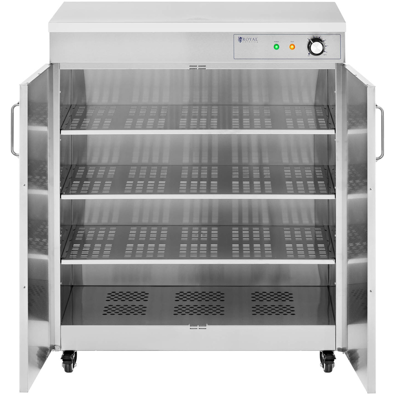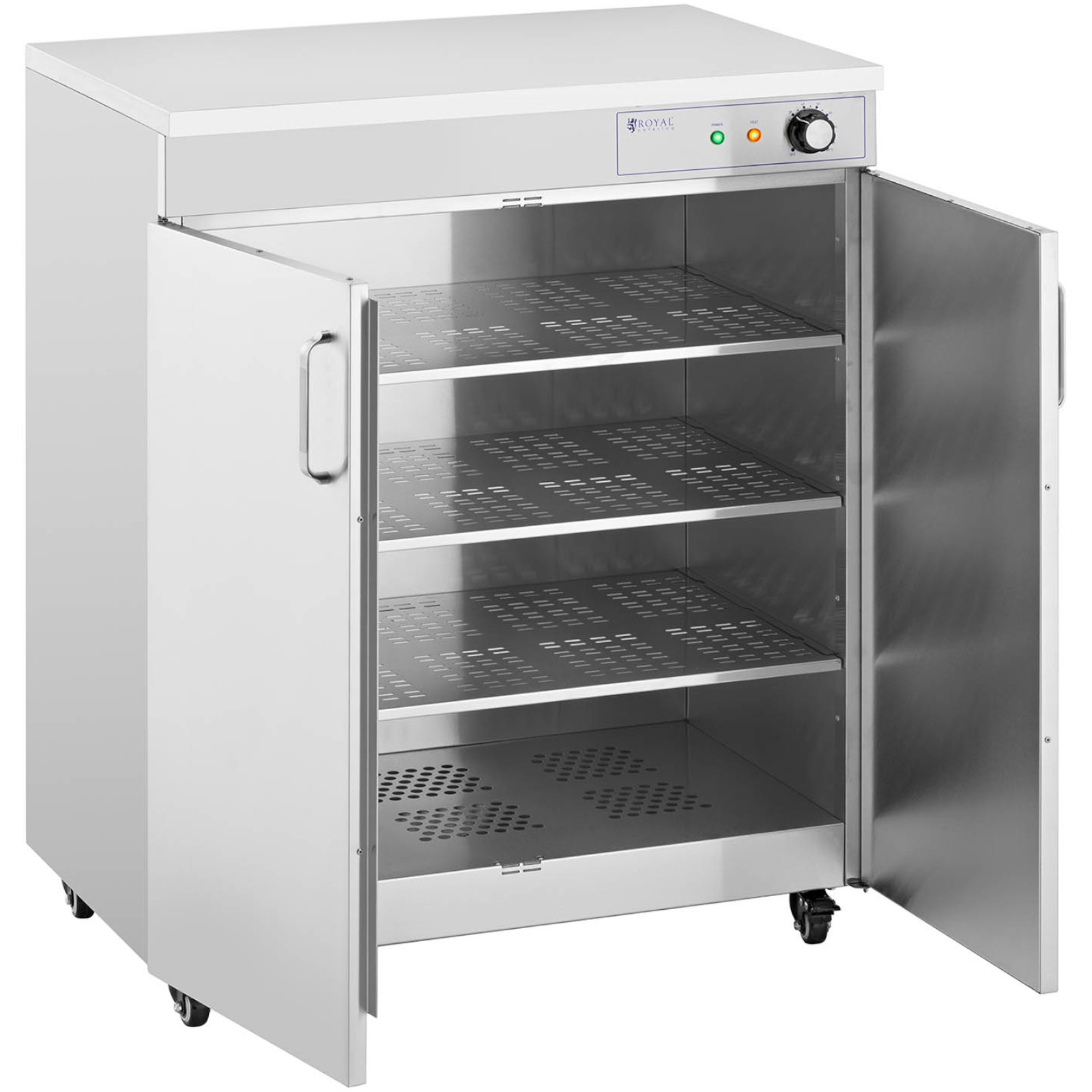 Podgrzewacz do talerzy marki Royal Catering to idealne rozwiązanie dla osób, które cenią sobie ciepłe i świeże potrawy. Dzięki niemu dania długo utrzymują optymalną temperaturę, co pozwala na komfortowe serwowanie posiłków bez pośpiechu w kuchni. Wykonany ze stali nierdzewnej, ten podgrzewacz jest nie tylko trwały, ale również łatwy w czyszczeniu. Urządzenie pomieści do 120 talerzy o średnicy 29 cm, co czyni go bardzo praktycznym w dużych kuchniach, bufetach oraz na eventach. Wnętrze podgrzewacza jest podzielone na 3 poziomy, co ułatwia organizację miejsca. Półki mają duże wymiary 70 x 40 cm, co zapewnia wygodne rozmieszczenie naczyń. Podgrzewacz jest wyposażony w termostat, umożliwiający płynną regulację temperatury w zakresie od 30 do 80°C. Zamki magnetyczne w drzwiach zapewniają ich bezpieczne zamknięcie, co pozwala na dłuższe utrzymanie ciepła. Dodatkowo, cztery skrętne kółka umożliwiają łatwy transport urządzenia, a hamulec postojowy zapewnia stabilność na miejscu. Wymiary podgrzewacza to 75 x 48.5 x 90 cm, a jego waga wynosi 36.15 kg. W zestawie znajduje się instrukcja obsługi. Podgrzewacz do talerzy to doskonałe wsparcie w każdej kuchni, które pozwoli na efektywne serwowanie ciepłych posiłków.