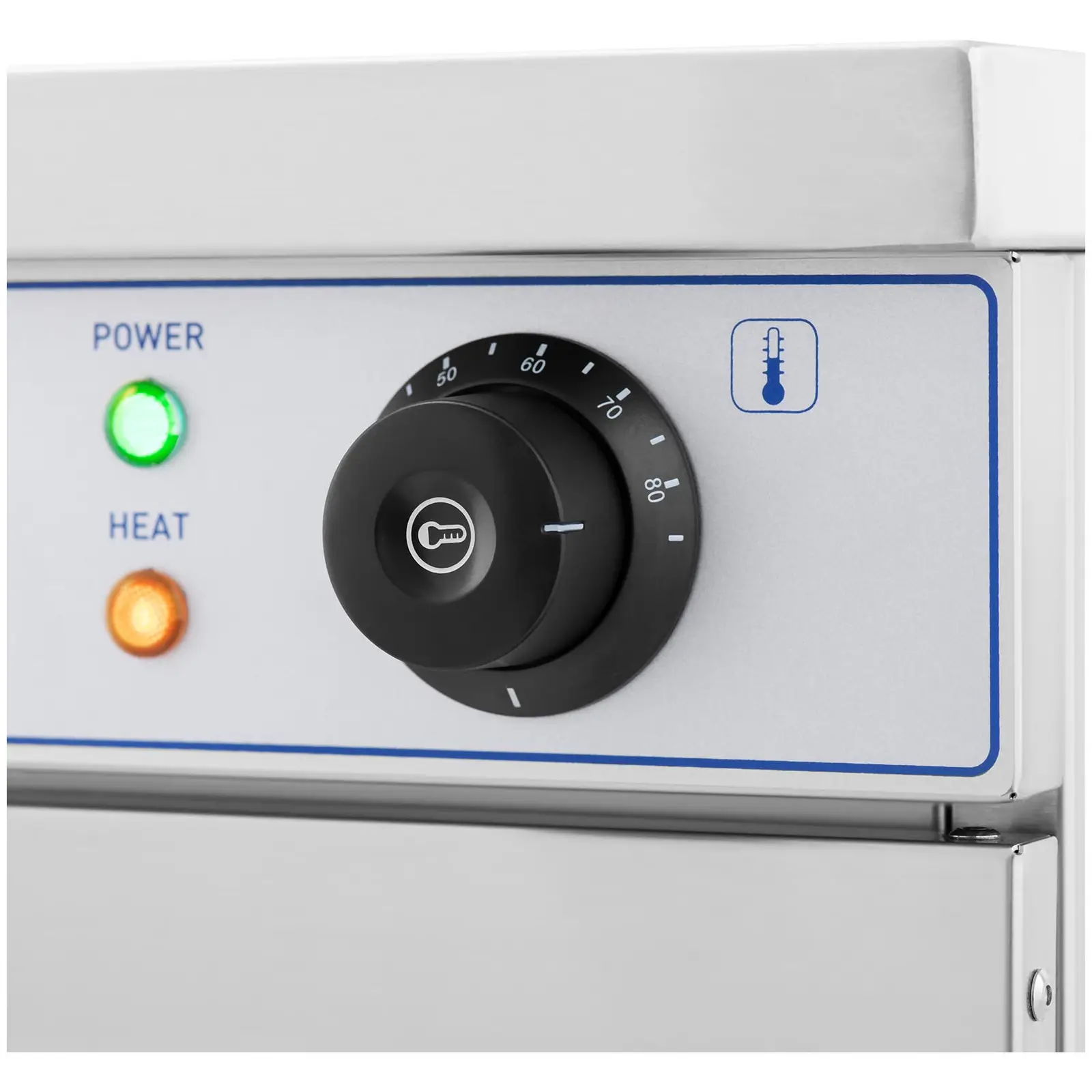 Podgrzewacz do talerzy marki Royal Catering to idealne rozwiązanie dla osób, które pragną serwować gorące dania przez dłuższy czas. Dzięki niemu potrawy zachowują optymalną temperaturę, co pozwala uniknąć pośpiechu w kuchni. Urządzenie doskonale sprawdzi się w bufetach oraz na wydarzeniach cateringowych.