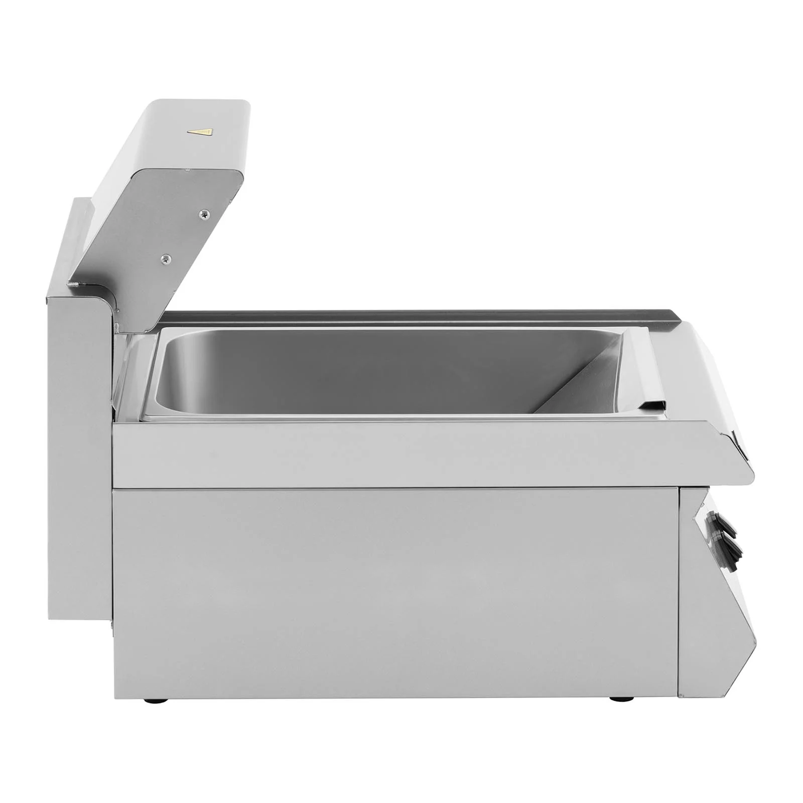 Podgrzewacz elektryczny do frytek marki Royal Catering to wyjątkowe rozwiązanie, które sprawdzi się w każdych warunkach - w barach, na imprezach oraz w cateringu. Dzięki swojej dużej pojemności wynoszącej 18 l, umożliwia jednoczesne podgrzewanie znacznej ilości frytek oraz innych smażonych potraw, które będą gotowe do serwowania przez długi czas.