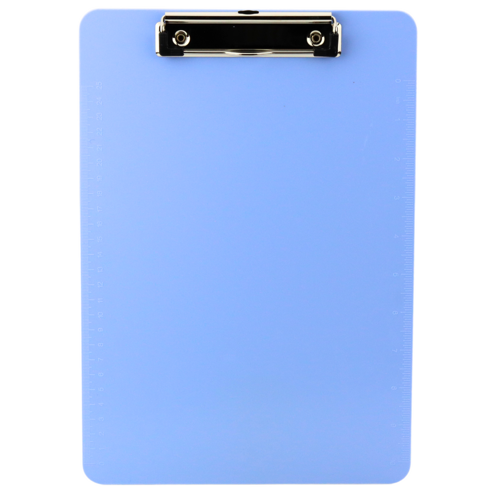Zaokrąglone rogi zwiększają komfort użytkowania, a wbudowana miarka po bokach – w calach (10") i centymetrach (25 cm) – pozwala na szybkie pomiary i nanoszenie danych. Solidny, sprężysty mechanizm zaciskowy skutecznie przytrzymuje dokumenty, a metalowa wysuwana zawieszka umożliwia powieszenie podkładki na haczyku lub tablicy.