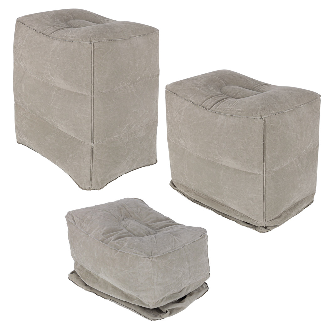 Oferujemy wygodny nadmuchiwany podnóżek, idealny na wyprawy turystyczne. Dzięki trzem poziomom wysokości możesz dostosować go do swoich potrzeb, co zapewnia komfort podczas odpoczynku. W zestawie znajduje się etui ze ściągaczem, co ułatwia transport i przechowywanie.
