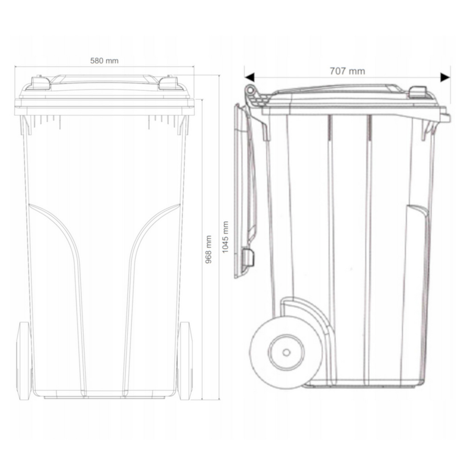 W zestawie znajduje się kubeł na odpady BIO o pojemności 240L, wyposażony w podwójne dno, co zapewnia dodatkową funkcjonalność i ułatwia czyszczenie. Model rekomendowany przez GOAP (Gospodarka Odpadami Aglomeracji Poznańskiej).
