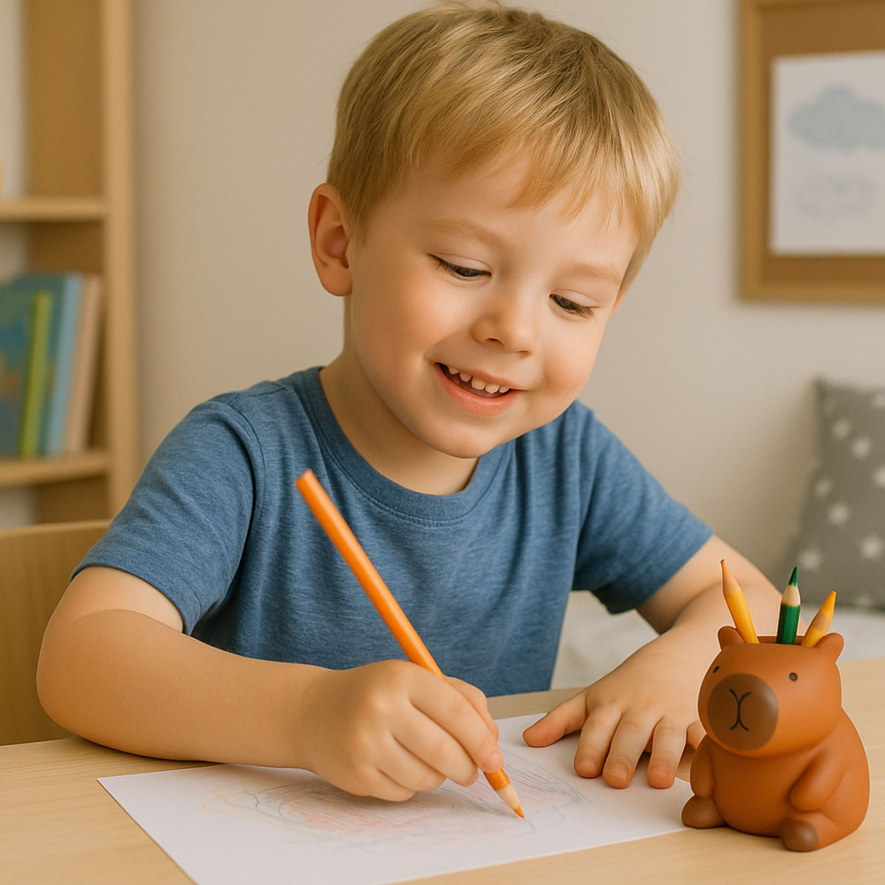 Pojemnik sprawdzi się jako organizer na biurko, półkę lub komodę. Można w nim przechowywać drobne akcesoria, takie jak długopisy, pędzelki, gumki, biżuterię, klucze czy małe rośliny dekoracyjne. Dzięki kompaktowym wymiarom oraz stabilnej konstrukcji stanowi praktyczny, a jednocześnie dekoracyjny dodatek do każdego pomieszczenia. Figurka doskonale nadaje się również na prezent dla miłośników kapibar, zwierząt oraz niebanalnych ozdób.