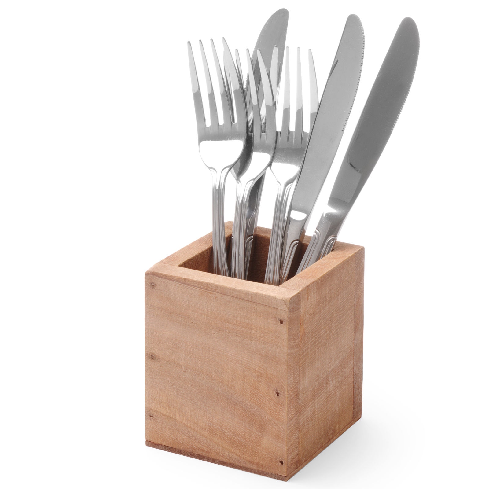Oferujemy funkcjonalny pojemnik na sztućce od marki Hendi. Wykonany z wytrzymałego drewna, idealnie sprawdzi się w każdej kuchni. Dzięki swojej kwadratowej formie, zajmuje mało miejsca, a jednocześnie pomieści wszystkie niezbędne sztućce.