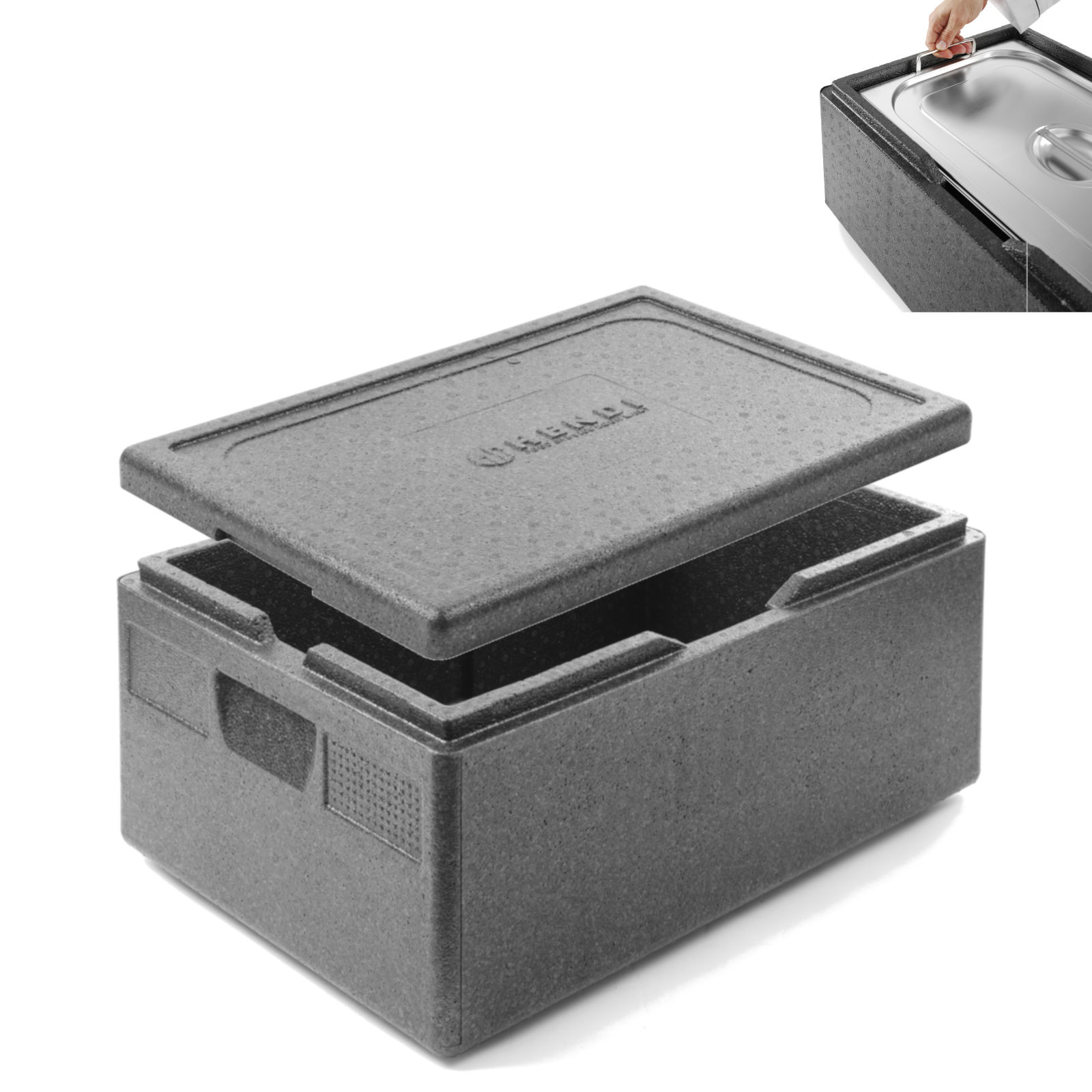 Oferujemy pojemnik termoizolacyjny GN 1/1 o pojemności 40 litrów, idealny do transportu żywności. Wykonany z pianki polipropylenowej EEP, zapewnia doskonałą izolację termiczną, co pozwala na dłuższe utrzymanie odpowiedniej temperatury potraw.