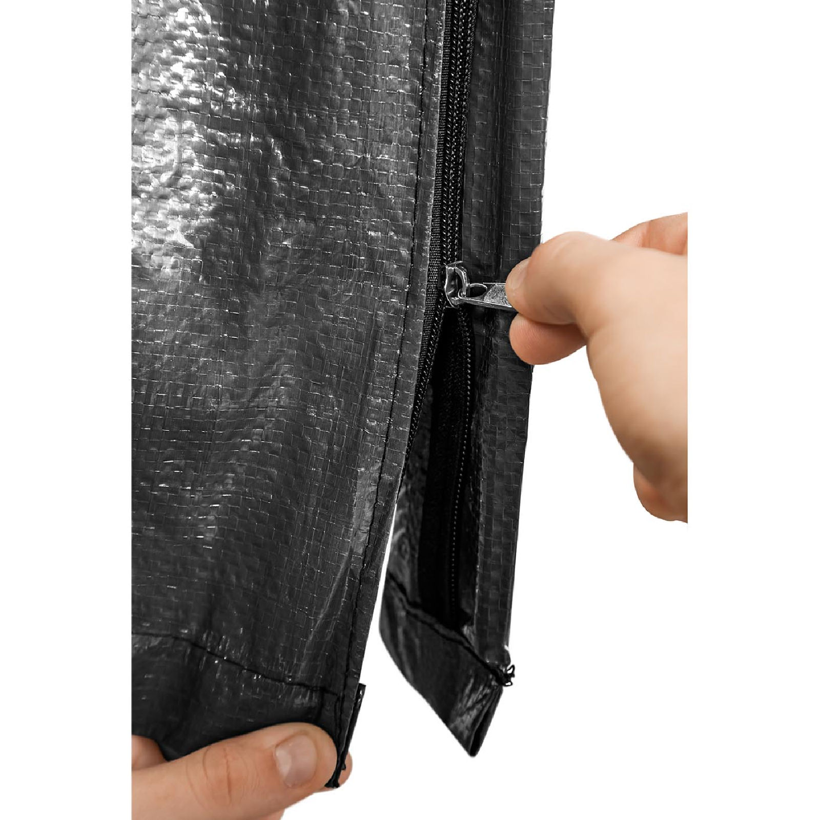 Pokrowiec wykonany jest z trwałego materiału PE, który zapewnia wentylację i jest odporny na działanie wody. Dzięki temu łatwo go utrzymać w czystości.