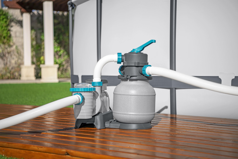 Jednym z najlepszych urządzeń do oczyszczenia wody w Twoim basenie jest pompa piaskowa. Od zwykłego filtra odróżnia ją to, że do jej działania wykorzystywany jest piasek, dzięki czemu staje się ona bardziej ekologiczna. Zwykłe filtry basenowe należy wymieniać co 2 tygodnie, natomiast piasek kwarcowy zachowuje swoje właściwości aż do roku. Pompa posiada silnik o mocy 500 W dzięki czemu umożliwia osiągnięcie wydajności na poziomie 5678 litrów na godzinę. Pompa posiada również 6 różnych trybów pracy takie jak płukanie, mycie, filtracja, recyrkulacja, wypuszczanie oraz wyłączanie urządzenia. Pompa wyposażona jest również w dozownik chemii, który utrzymuje odpowiednią ilość chloru i zapewnia odpowiednią czystość wody w Twoim basenie.