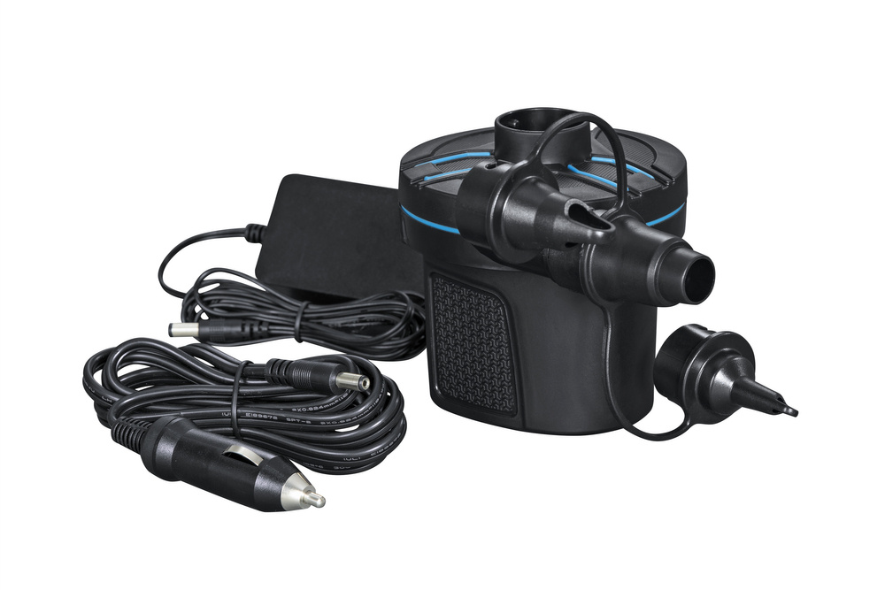 Elektryczna pompka 62255 BESTWAY jest idealna do napompowania materaca, pontonu, zabawek dmuchanych itp. Pompka jest przystosowana do napięcia elektrycznego 220-240V lub do zasilania z gniazda samochodowego 12V. Dzięki 3 uniwersalnym końcówkom pasującym prawie do wszystkich rodzajów zaworów, można ją wykorzystać na wiele sposobów. Pompka posiada także funkcję spuszczania powietrza, co jest bardzo przydatne przy składaniu pompowanych przedmiotów. Pompka jest też bardzo lekka i nie zajmuje wiele miejsca, można ją zabrać w każdą podróż.