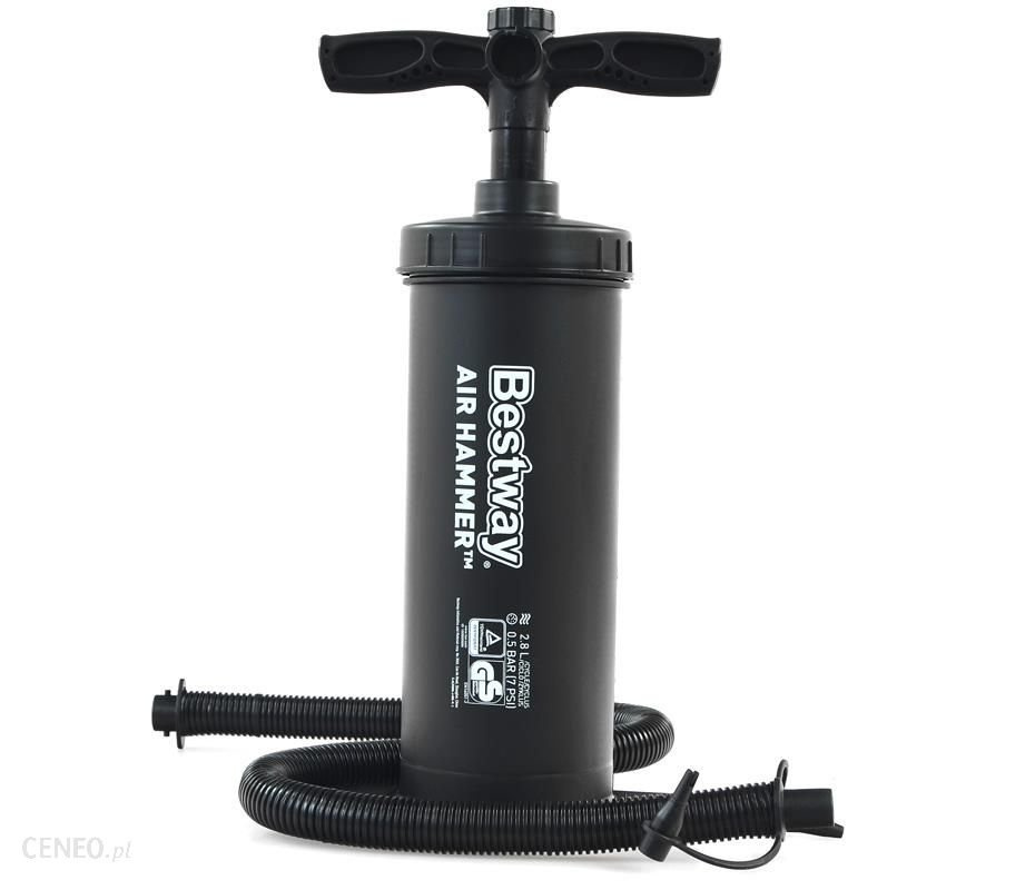 Jeżeli chcesz szybko napompować materac, koło bądź piłkę plażową to z pewnością przyda Ci się do tego pompka marki bestway. Dzięki swoim wymiennym końcówką doskonale sprawdzi się przy wszystkich rodzajach artykułów dmuchanych. Pompka pompuje powietrze zarówno podczas ruchu w górę jak i w dół co skutecznie skraca czas pompowania. Jej niewielki kształt sprawia, że idealnie nadaje się do zabrania jej ze sobą na basen bądź plaże.