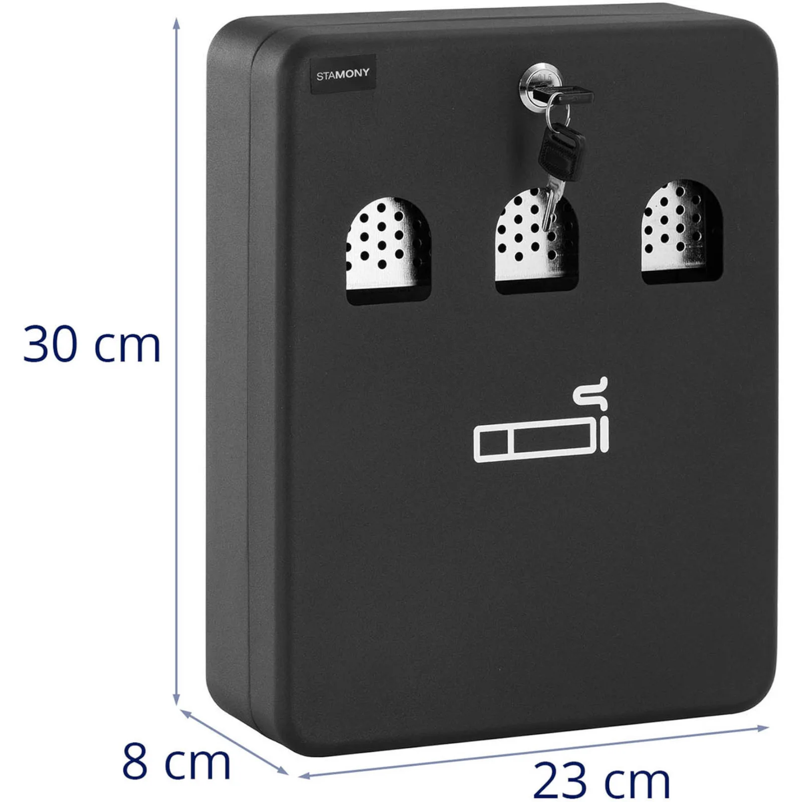Praktyczna i estetyczna popielniczka ścienna firmy STAMONY to doskonałe rozwiązanie do użytku na zewnątrz. Wykonana ze stali walcowanej, zapewnia nie tylko trwałość, ale także odporność na niekorzystne warunki atmosferyczne dzięki proszkowemu wykończeniu.