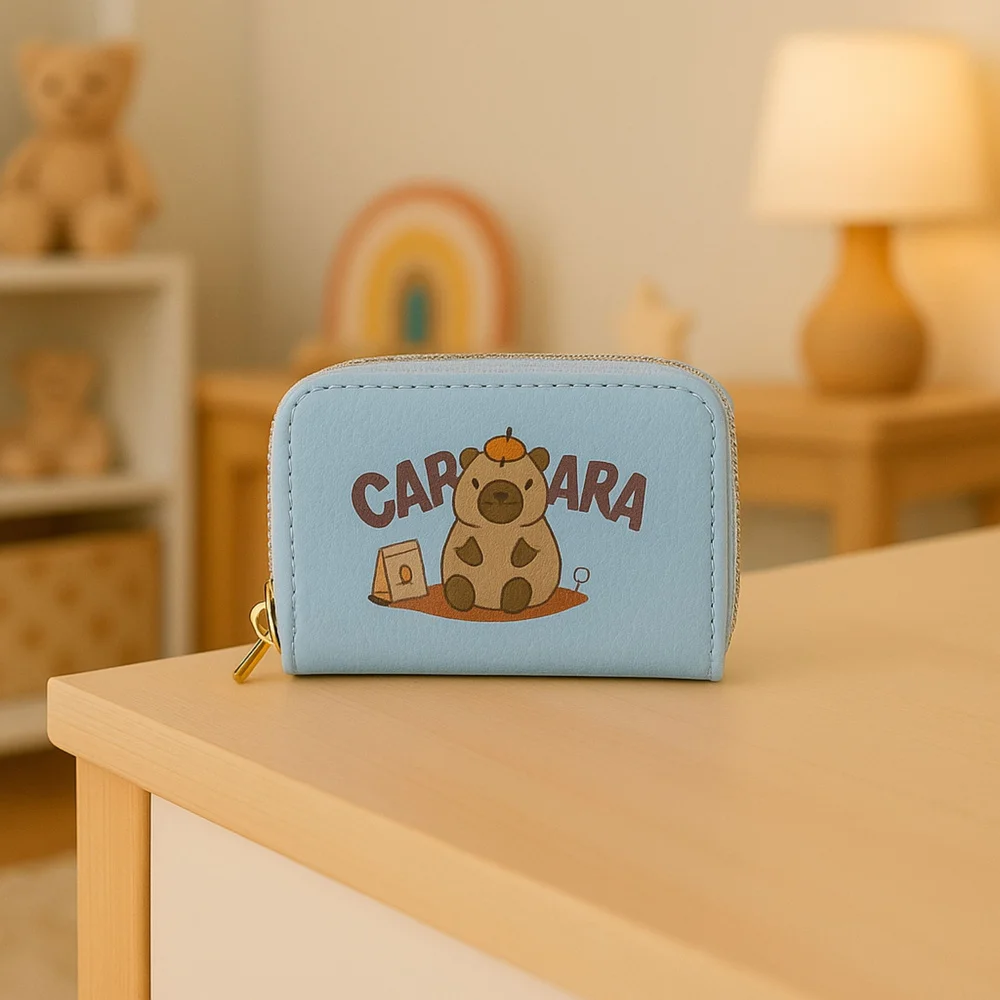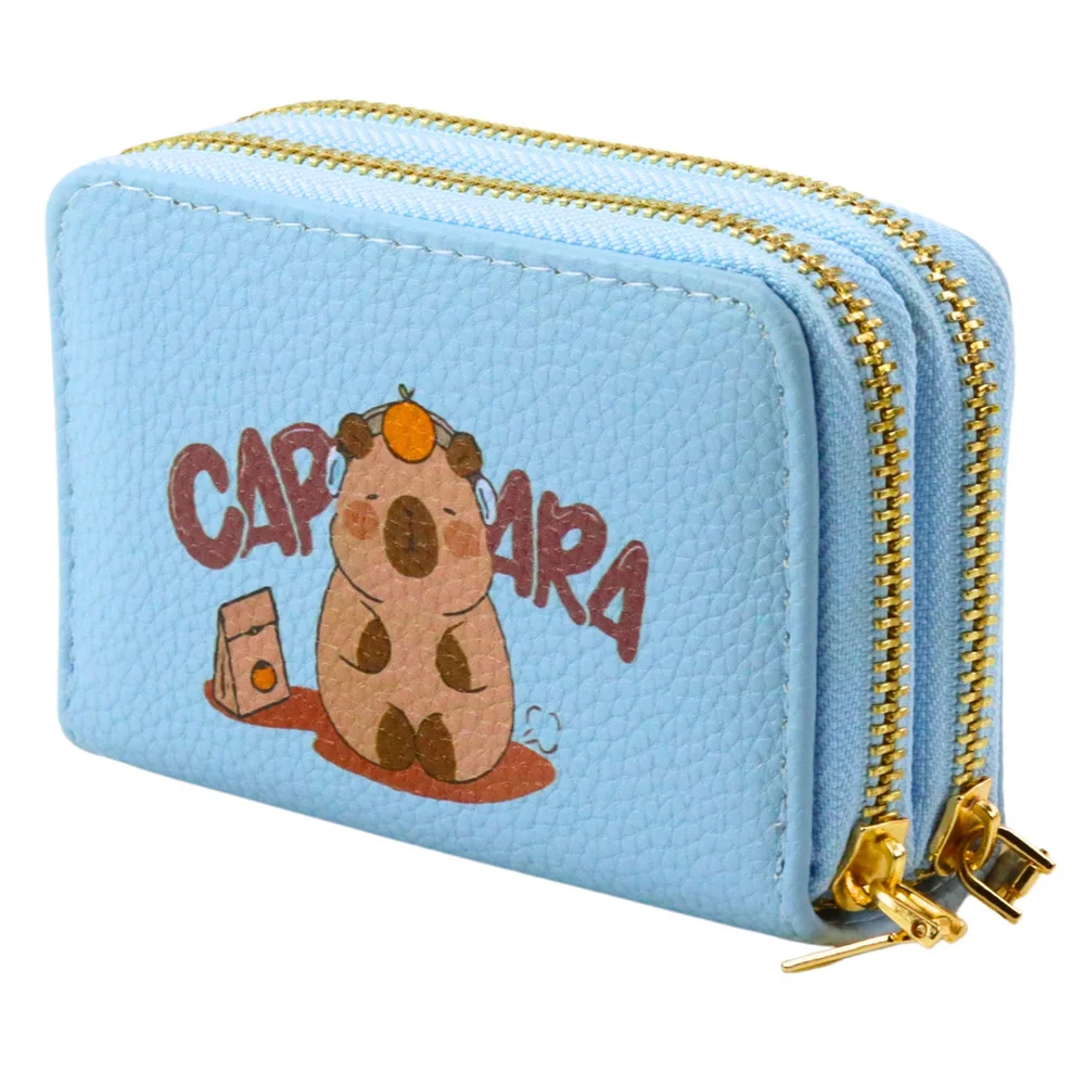 Niebieski portfel z uroczym motywem kapibary to funkcjonalny i wygodny dodatek, który łączy kompaktowy rozmiar z dużą pojemnością. Wyposażony w dwie oddzielne komory zamykane na zamki błyskawiczne, zapewnia wygodne przechowywanie kart, banknotów, monet oraz innych niezbędnych drobiazgów. Dzięki harmonijkowej konstrukcji wewnętrznej portfel oferuje wiele przegródek, które ułatwiają porządkowanie zawartości.