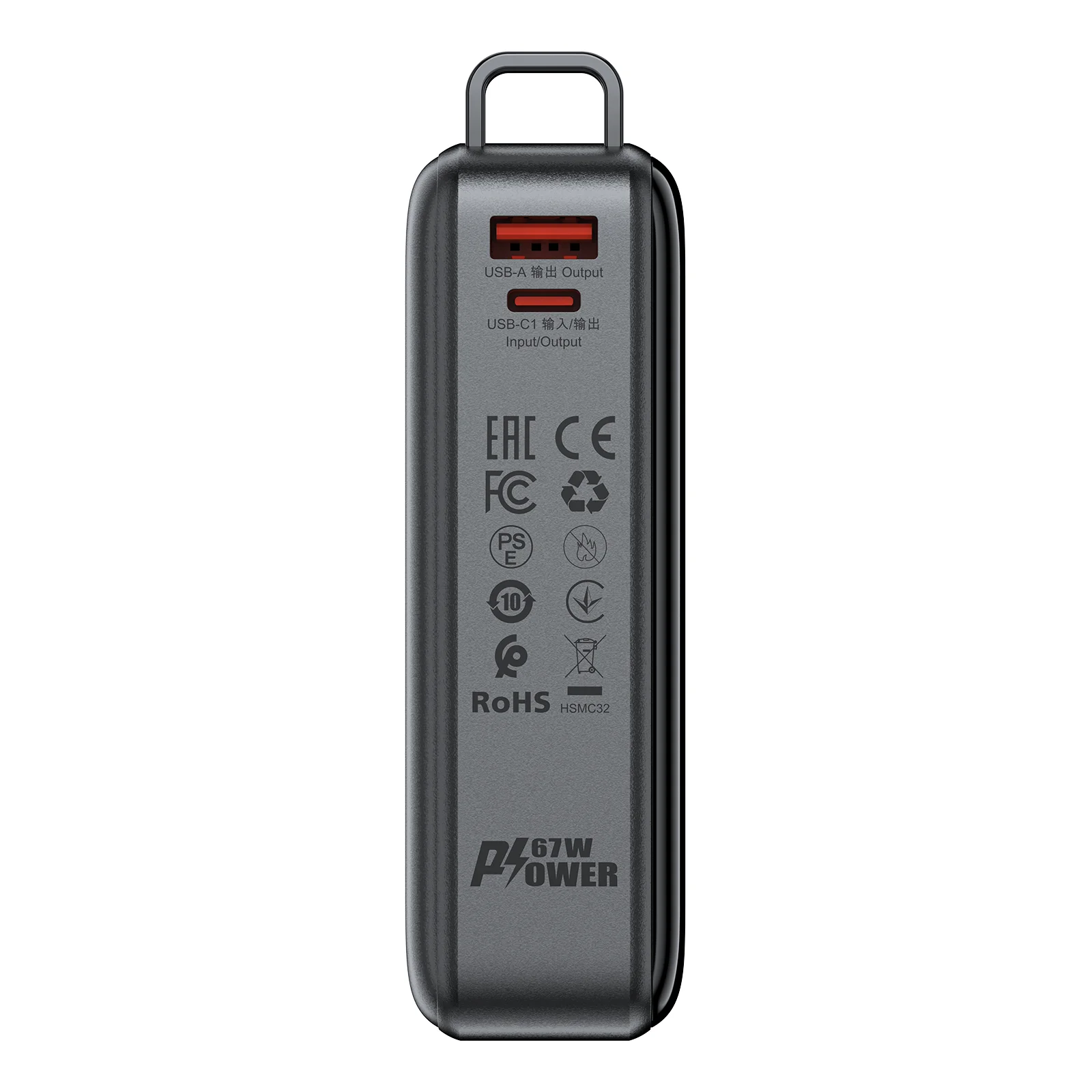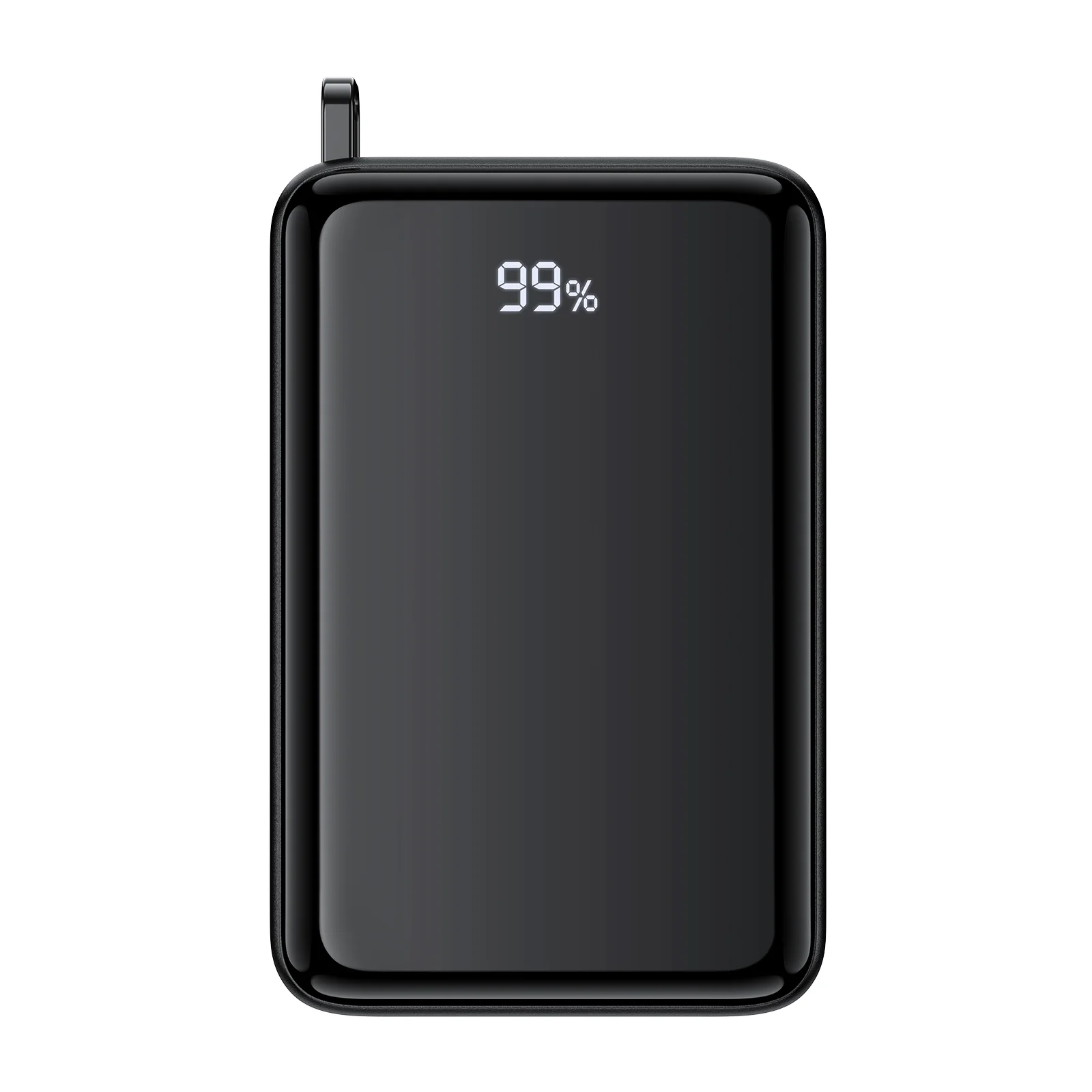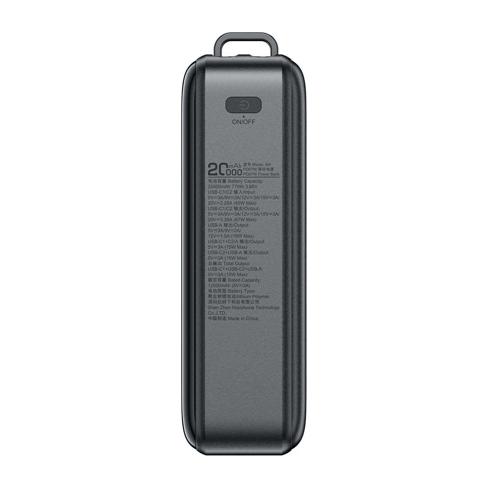 Powerbank 20000mAh M4 PD 67W z wbudowanym kablem USB-C w kolorze czarnym to niezawodne źródło energii, które zaspokoi potrzeby każdego użytkownika w podróży, pracy czy codziennym użytku. Dzięki pojemności 20000 mAh masz pewność, że Twoje urządzenia będą zawsze naładowane.