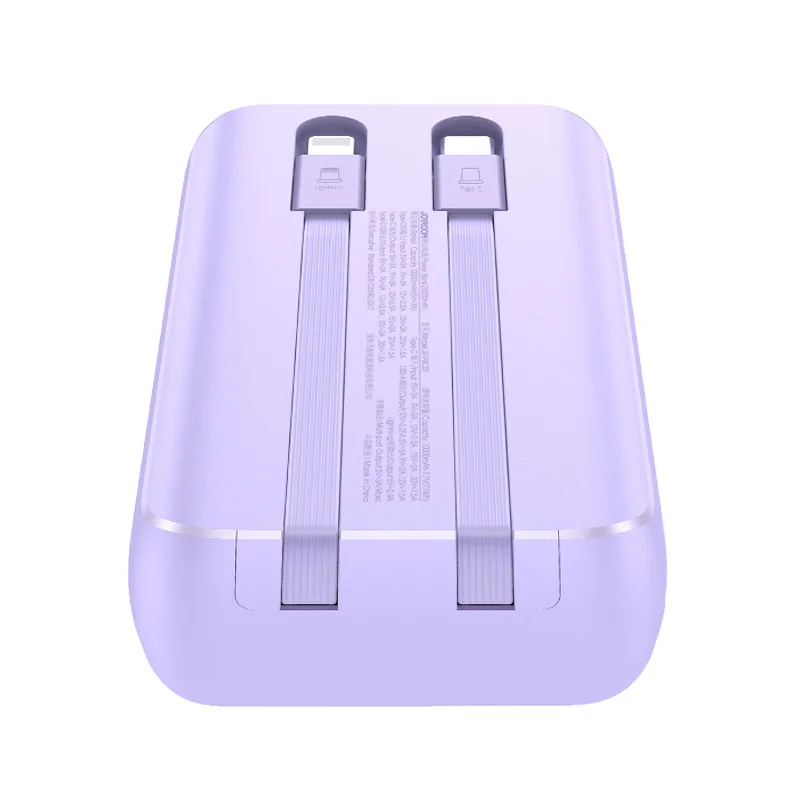 Powerbank wyposażony jest w zintegrowane kable Lightning oraz USB-C, co eliminuje potrzebę noszenia dodatkowych akcesoriów. Jest gotowy do użycia z różnymi urządzeniami.