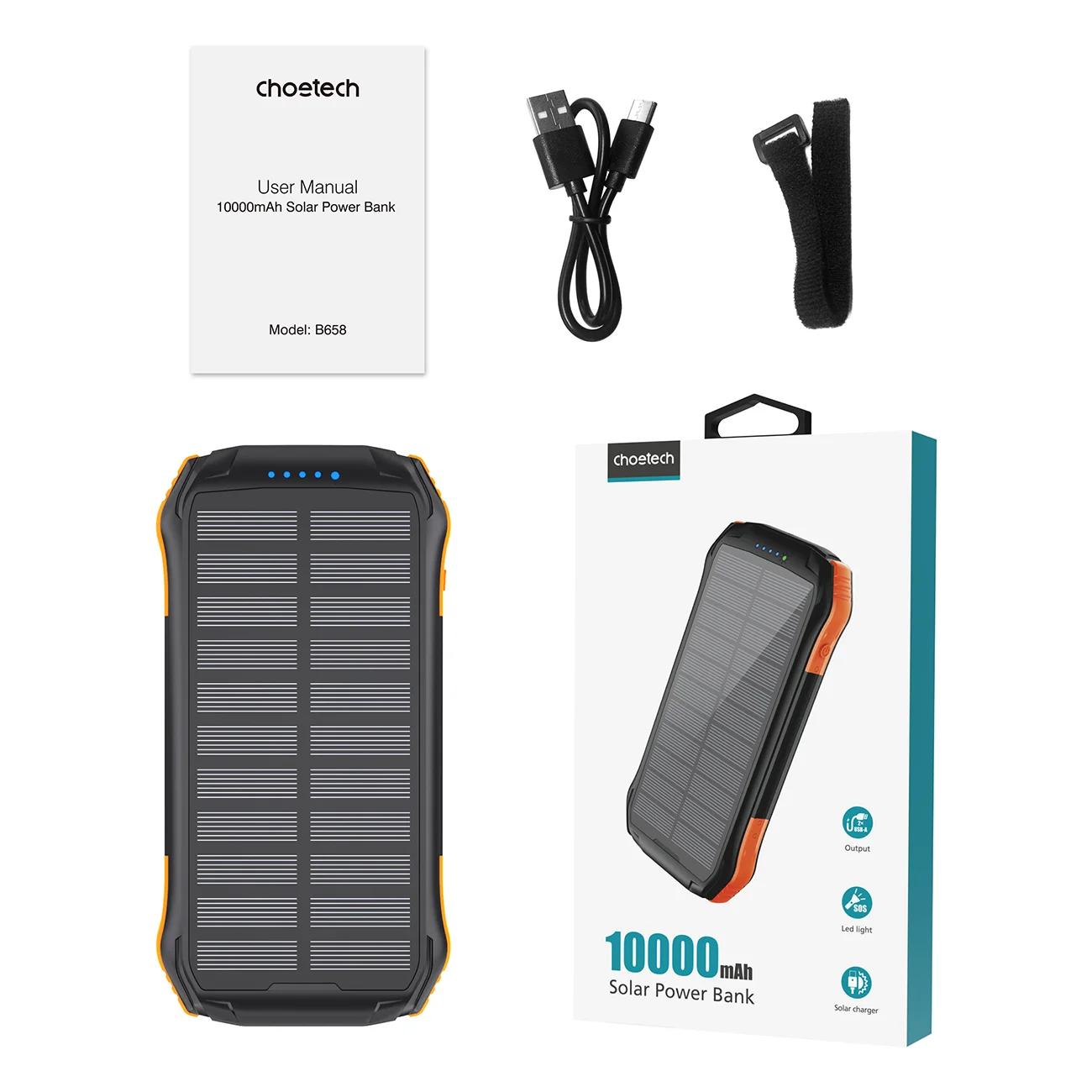 Powerbank ładowarka solarna 10000 mAh 2x USB-A - czarno-pomarańczowy to idealne rozwiązanie dla osób aktywnych, które potrzebują niezawodnego źródła energii w każdych warunkach. Dzięki pojemnej baterii o pojemności 10000 mAh oraz wbudowanemu panelowi słonecznemu, możesz być pewny, że Twoje urządzenia są zawsze naładowane, nawet w najtrudniejszych warunkach.