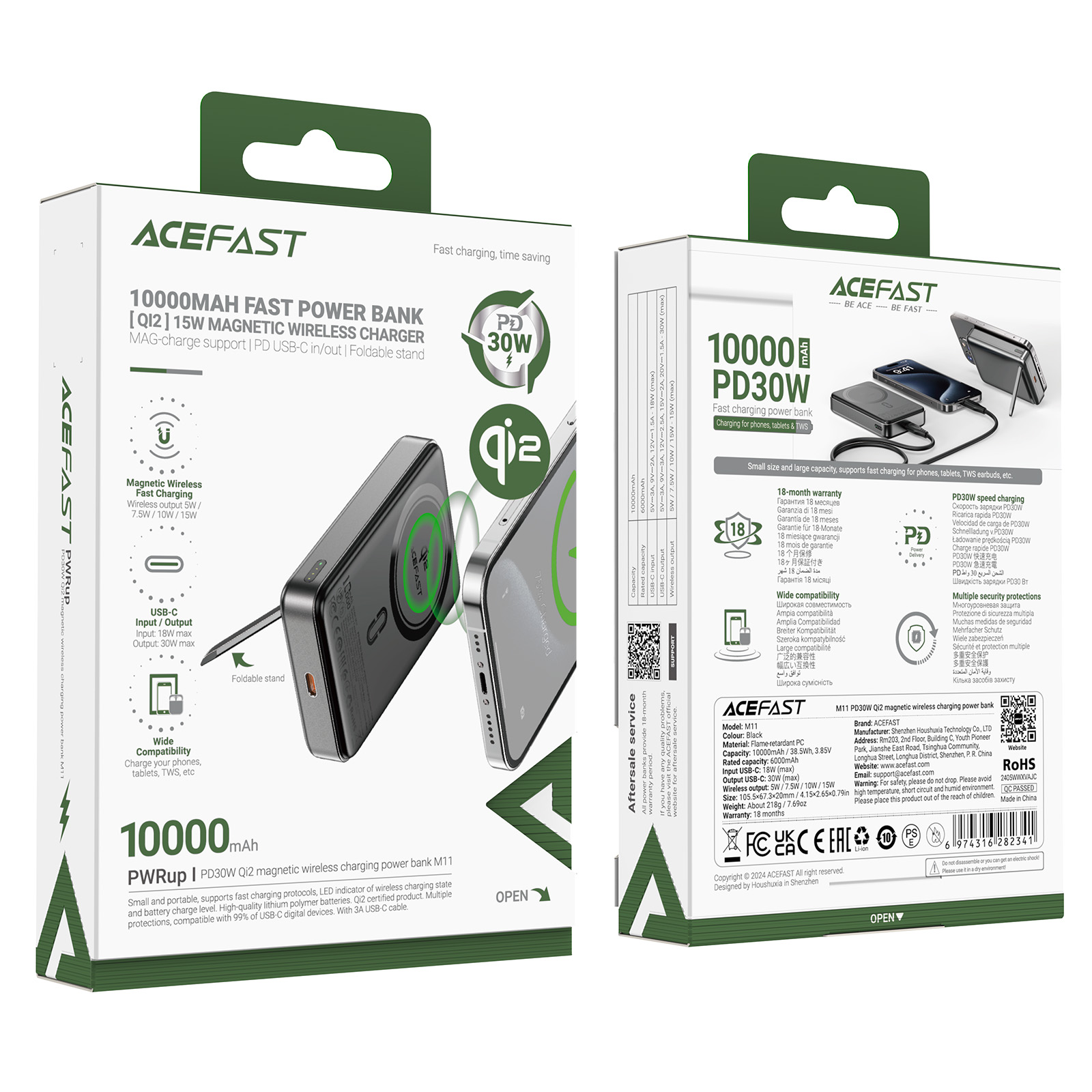 Powerbank Acefast M11-10000 został wyposażony w ogniwa litowo-polimerowe, które zapewniają długotrwałe użytkowanie oraz stabilność ładowania.