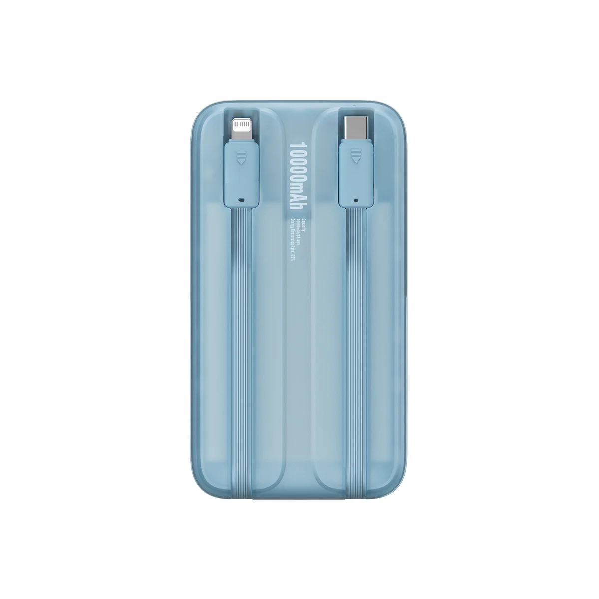 Nowoczesny design z przejrzystą obudową sprawia, że powerbank nie tylko jest praktyczny, ale także stylowy. Posiada wbudowane kable USB-C i Lightning oraz porty USB-C i USB-A, co zapewnia wszechstronność i kompatybilność z wieloma urządzeniami. Obsługuje protokoły szybkiego ładowania, co zwiększa efektywność użytkowania.