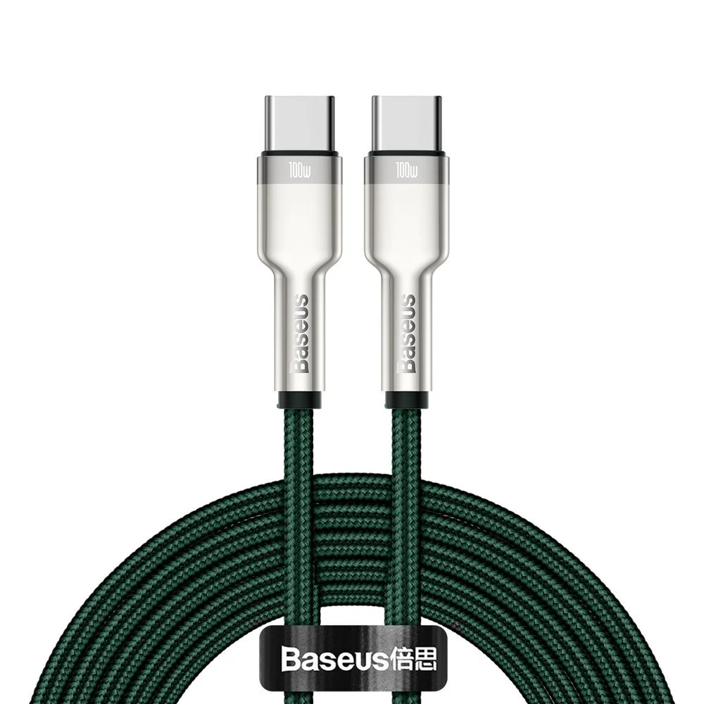 Przewód kabel USB-C - USB-C Cafule Metal Data Power Delivery 100W 2m - zielony