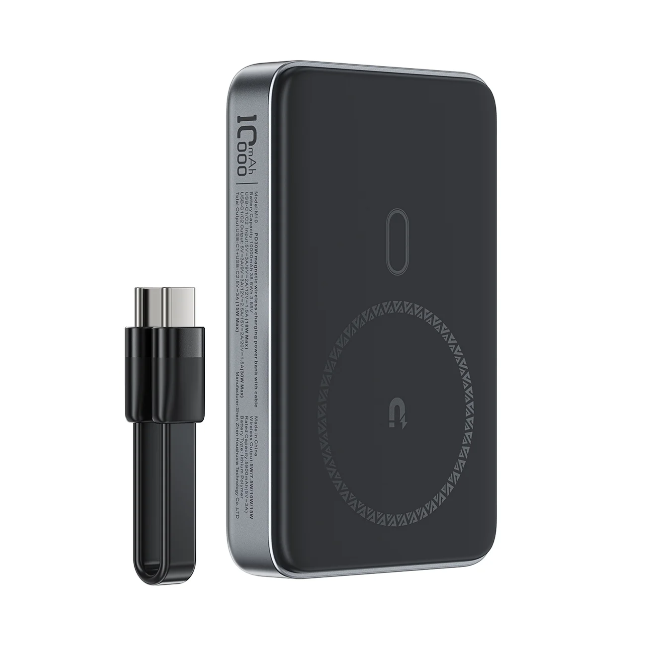 Powerbank magnetyczny 10000mAh indukcyjny 2x USB-C PD 30W + kabel USB-C - czarny