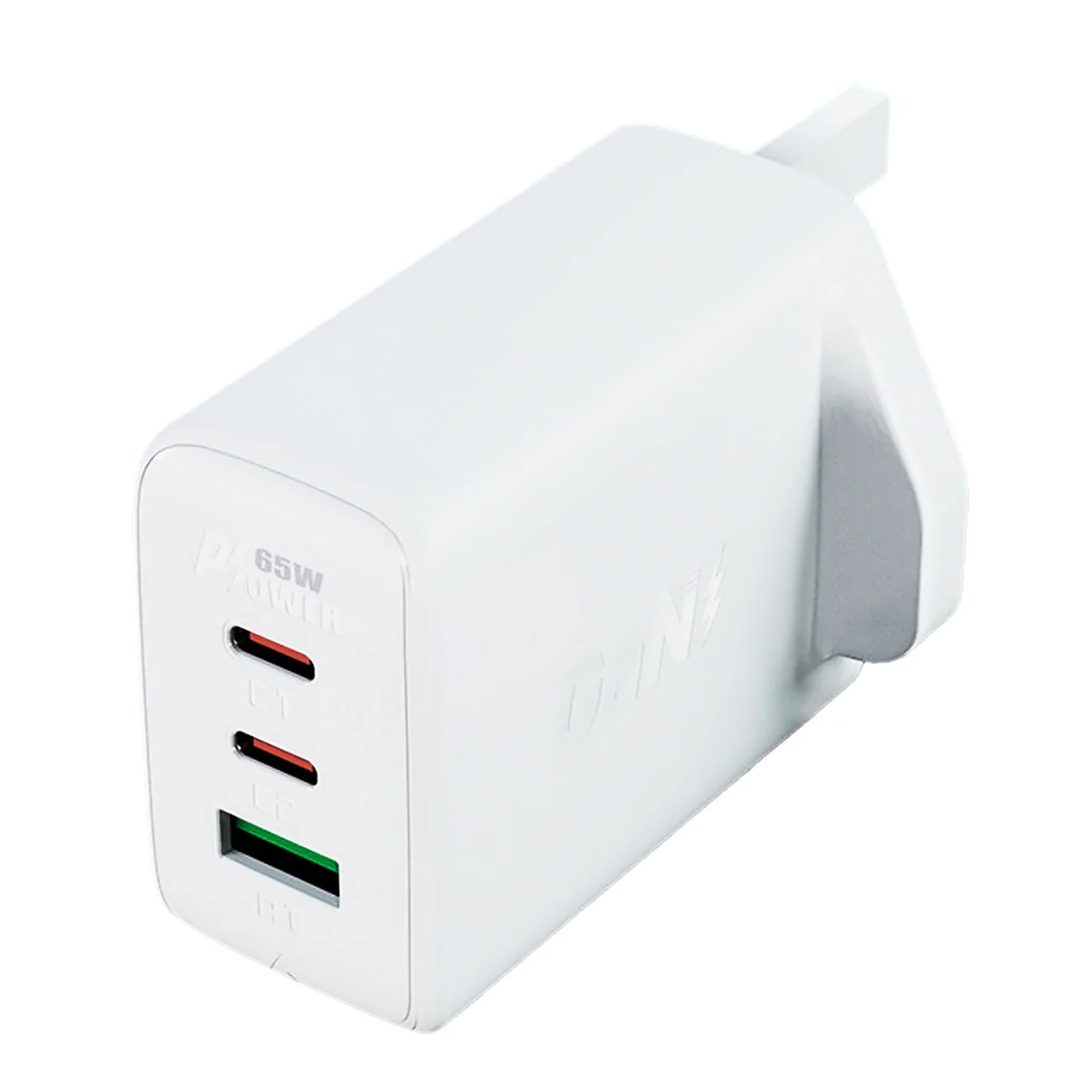 Ładowarka sieciowa wtyczka angielska UK GaN 65W 1x USB 2x USB-C PD biała