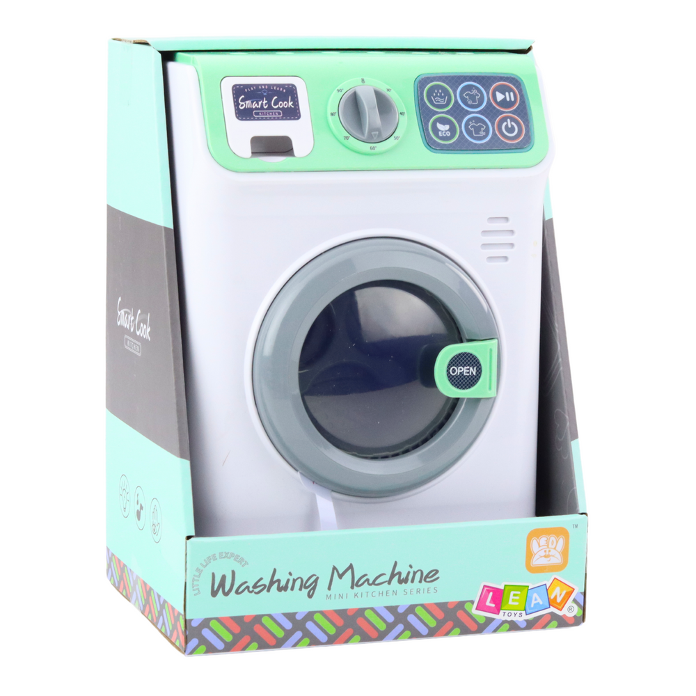 Zabawkę uruchamia się przyciskiem ON/OFF umieszczonym na panelu dotykowym. Po wybraniu jednego z dostępnych programów pralka zaczyna działać – towarzyszy temu dźwięk nalewania wody, a bęben wewnątrz urządzenia obraca się jak w prawdziwej pralce. Dodatkowym atutem jest otwierany frontowy bęben oraz wysuwana szuflada na proszek, co pozwala dziecku na jeszcze bardziej realistyczną i angażującą zabawę.