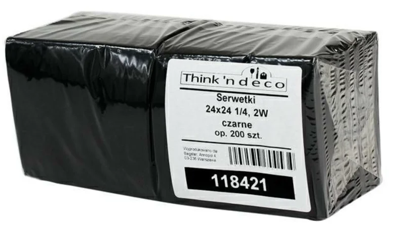 Serwetki Czarne 24x24, 2 Warstwy, 200 sztuk