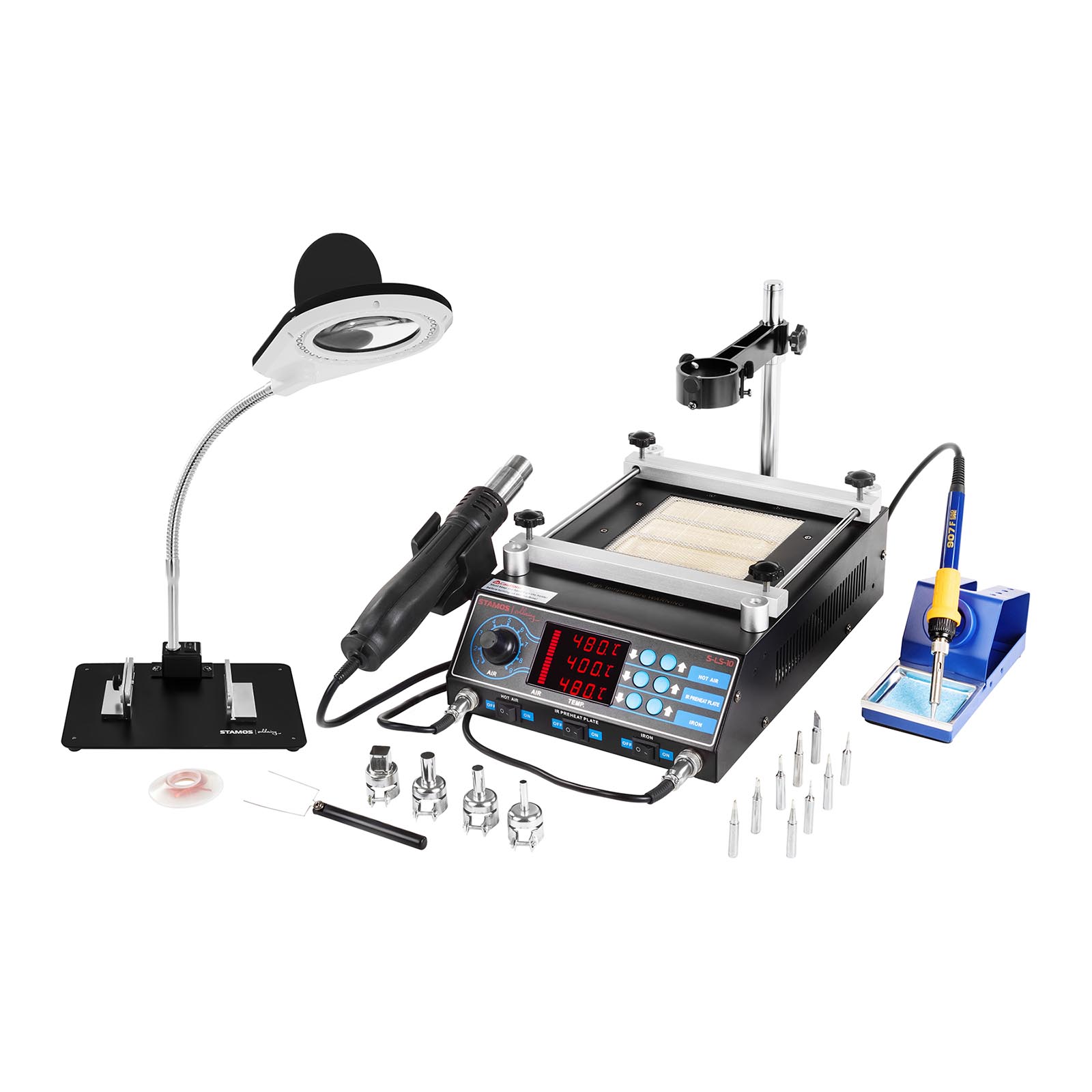 Stacja lutownicza S-LS-10 to wszechstronne urządzenie przeznaczone do profesjonalnych prac lutowniczych. Dzięki precyzyjnemu cyfrowemu sterowaniu i zaawansowanemu układowi PID, zapewnia stabilną temperaturę, co jest kluczowe przy pracy z układami elektronicznymi, takimi jak SOIC, QFP, PLCC, BGA, SMD.