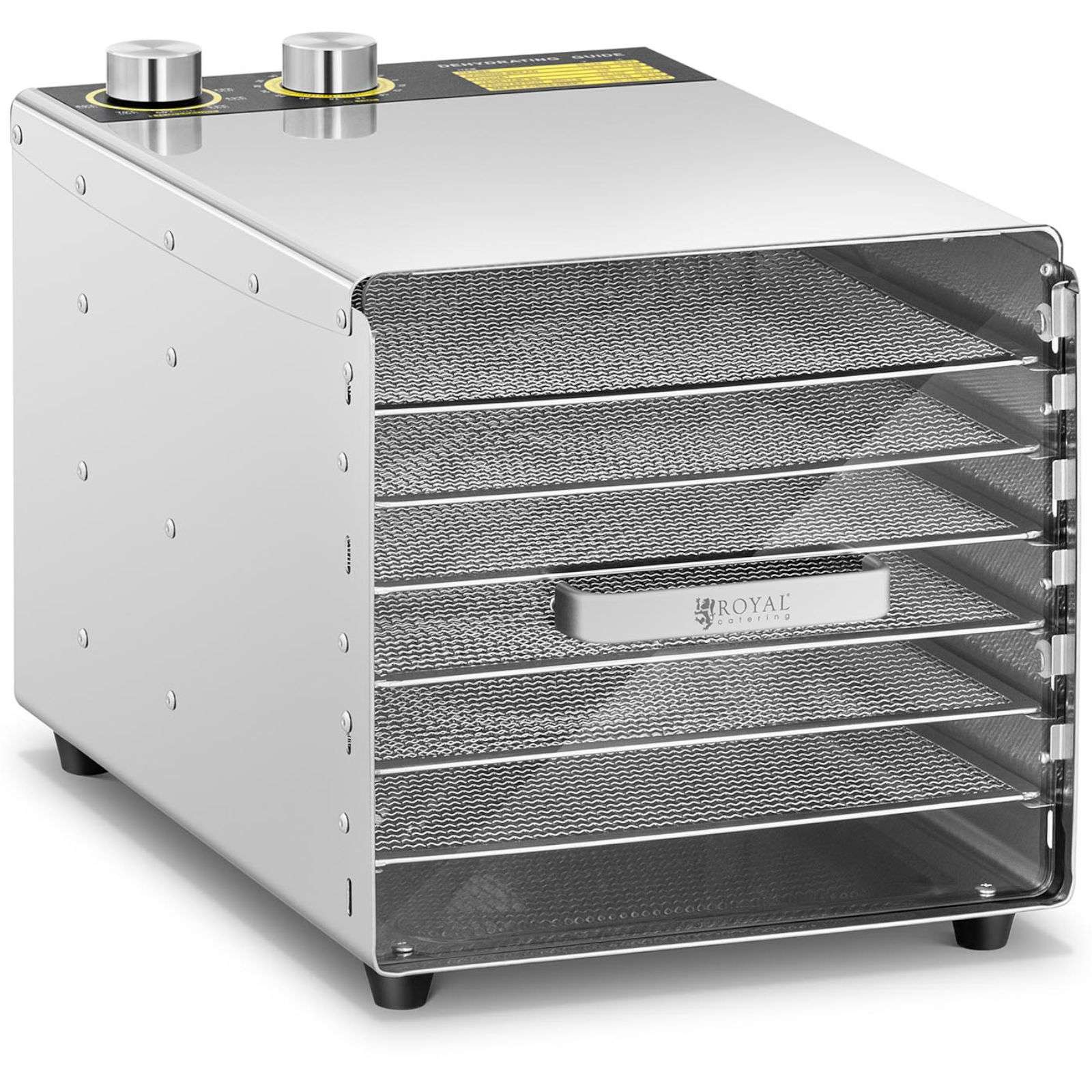 Profesjonalna suszarka do żywności to doskonałe urządzenie do suszenia ziół, owoców oraz grzybów. Idealnie sprawdzi się w każdej kuchni, zarówno domowej, jak i gastronomicznej. Dzięki mocy 500 W szybko osiąga optymalną temperaturę roboczą w zakresie 33-80°C, co gwarantuje efektywne suszenie. Wygodne pokrętło umożliwia regulację mocy, a timer pozwala na bezobsługową pracę przez maksymalnie 30 godzin. Suszarka wyposażona jest w 6 ażurowych rusztów ze stali nierdzewnej, co pozwala na jednoczesne suszenie większej ilości produktów. Obudowa również wykonana jest z stali nierdzewnej, co zapewnia jej trwałość i odporność na uszkodzenia. W zestawie znajdują się 3 silikonowe maty, które zapobiegają przywieraniu żywności do tacek, co jest szczególnie przydatne przy suszeniu wilgotnych owoców. Produkty są dostarczane z instrukcją w języku polskim oraz niezbędnymi akcesoriami, co ułatwia ich użytkowanie.