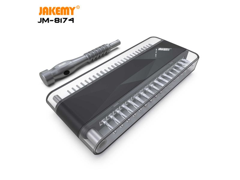 Naprawa nowoczesnych urządzeń elektronicznych wymaga nie tylko umiejętności, ale również wykorzystania odpowiedniego, precyzyjnego sprzętu. Producenci stosują różnego rodzaju zabezpieczenia, co sprawia, że do ich otwarcia wymagane są dodatkowe końcówki, które trudno znaleźć w podstawowych zestawach wkrętaków. Nasz zestaw zawiera aż 42 różne końcówki (bity). Każda z nich posiada swoje własne miejsce, co pozwala na zachowanie porządku oraz sprawną organizację miejsca pracy, a tym samym jej szybkie i dokładne wykonanie. Komplet przeznaczony jest zarówno do napraw telefonów, tabletów jak również wszystkich innych urządzeń i sprzętów, które posiadają niestandardowe, drobne śruby.