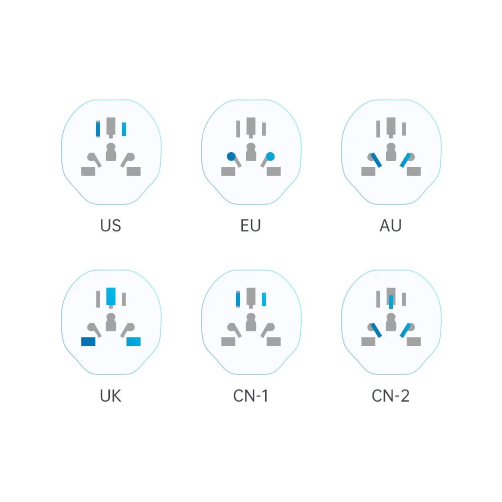 Przejściówka adapter podróżny UK/US/AU/FI/CN-1/CN-2 do EU - biały to niezbędnik dla każdego podróżnika. Dzięki nowoczesnej, uniwersalnej konstrukcji, możesz podłączyć swoje elektroniczne urządzenia z różnymi typami wtyczek do standardowych europejskich gniazdek.