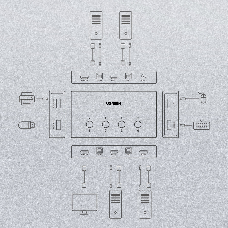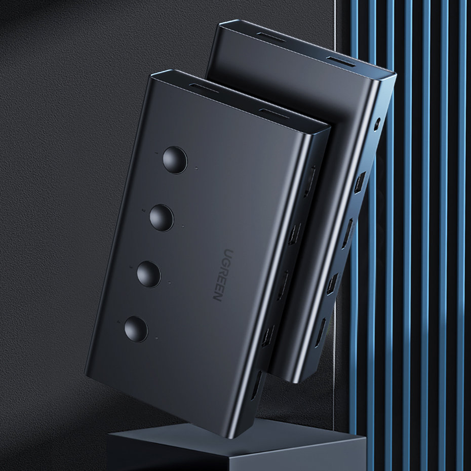 Przełącznik KVM Ugreen CM293 to idealne rozwiązanie dla osób korzystających z wielu komputerów. Dzięki niemu możesz podłączyć jednocześnie jeden zestaw klawiatury i myszki do czterech komputerów, a także współdzielić pendrive'y czy drukarki. Ułatwia to codzienną pracę i zwiększa efektywność.