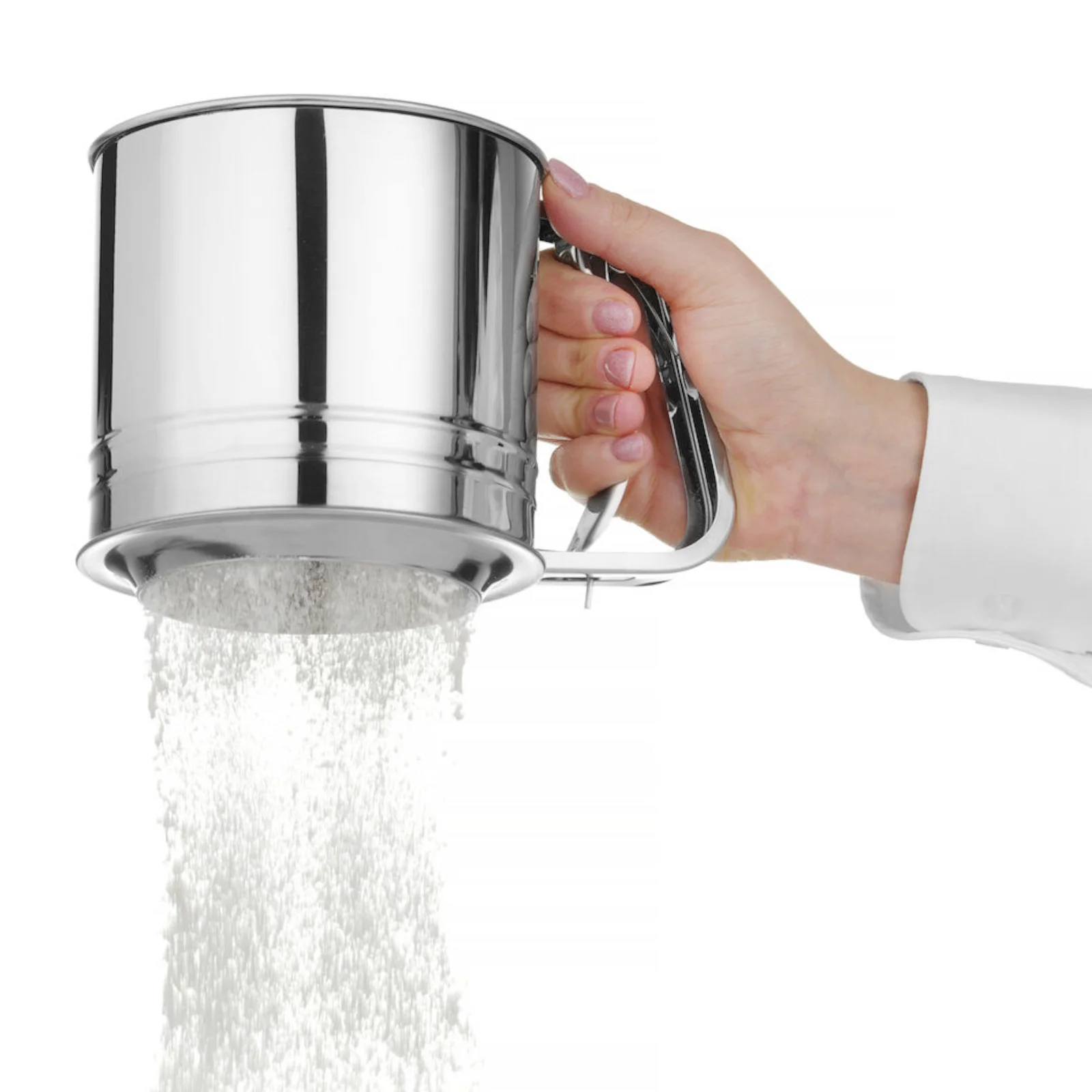 Wygodne użytkowanie to jego kluczowa cecha. Mechanizm sprężynowy w uchwycie umożliwia komfortową pracę jedną ręką. Obudowa i sitko są wykonane ze stali nierdzewnej, co zapewnia trwałość i łatwość w czyszczeniu. Przesiewacz można myć w zmywarce, co ułatwia jego pielęgnację.